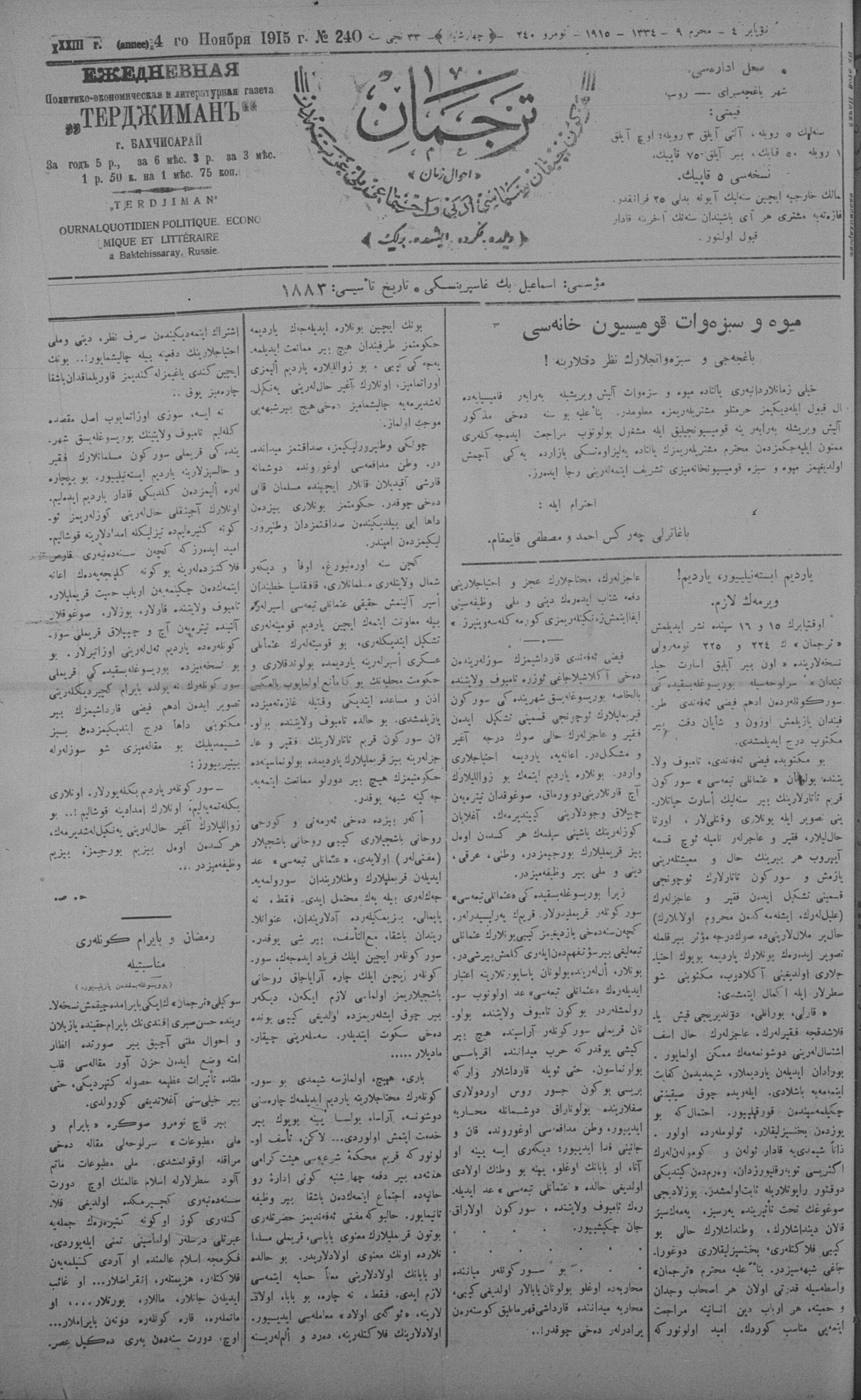 Tercüman, 04 November 1915 Year 33 No 240