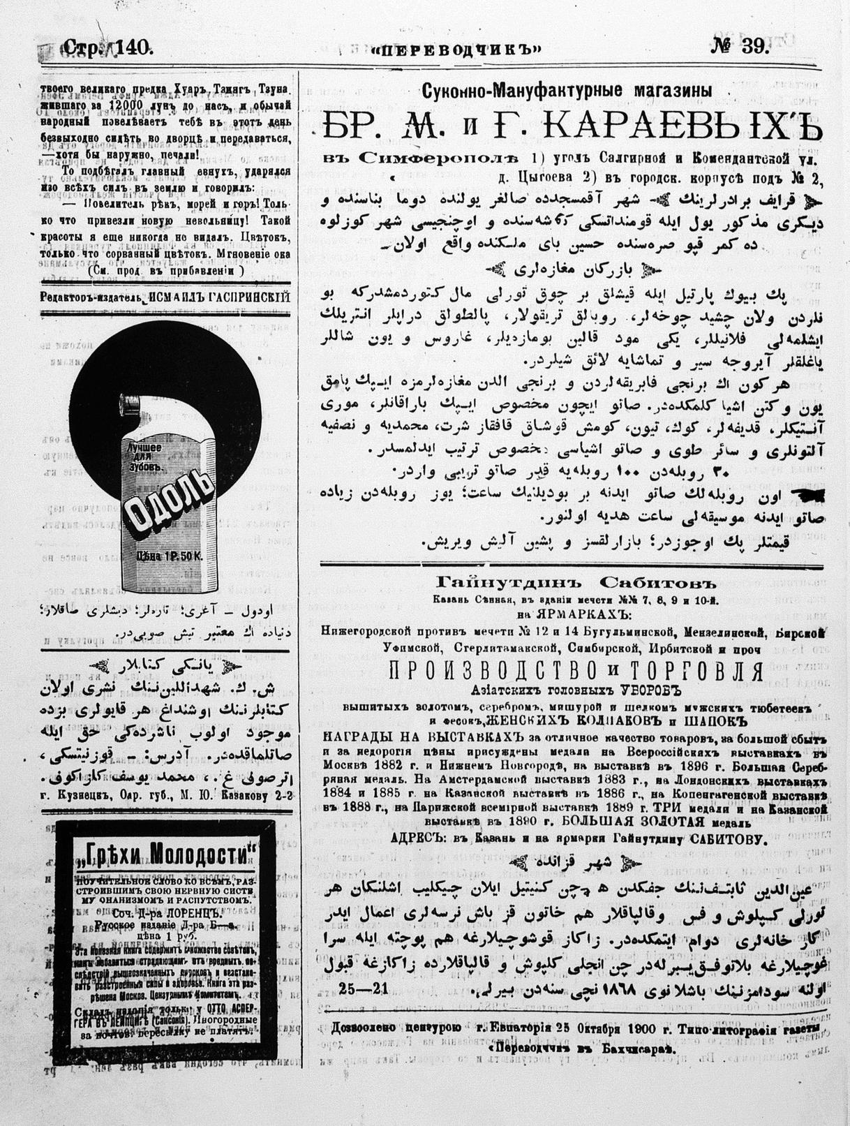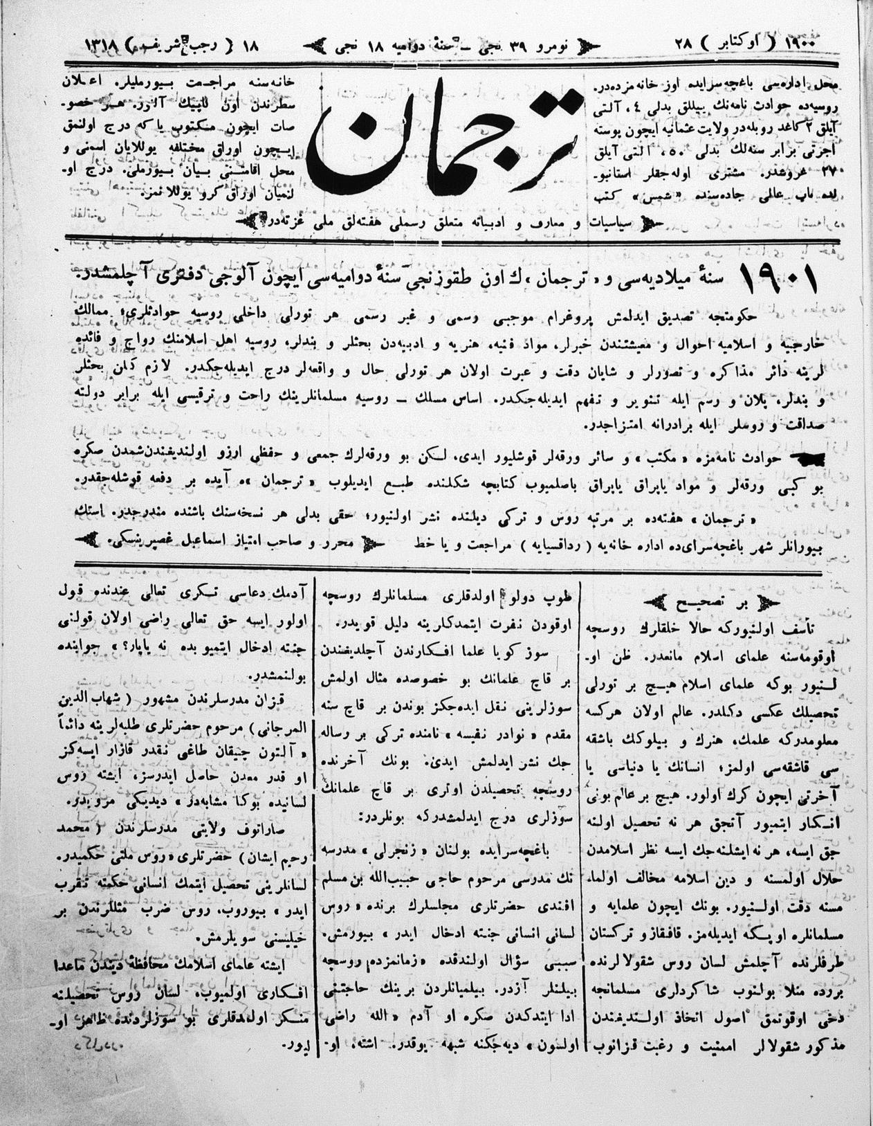 Tercüman, 28 October 1900 Year 18 No 39
