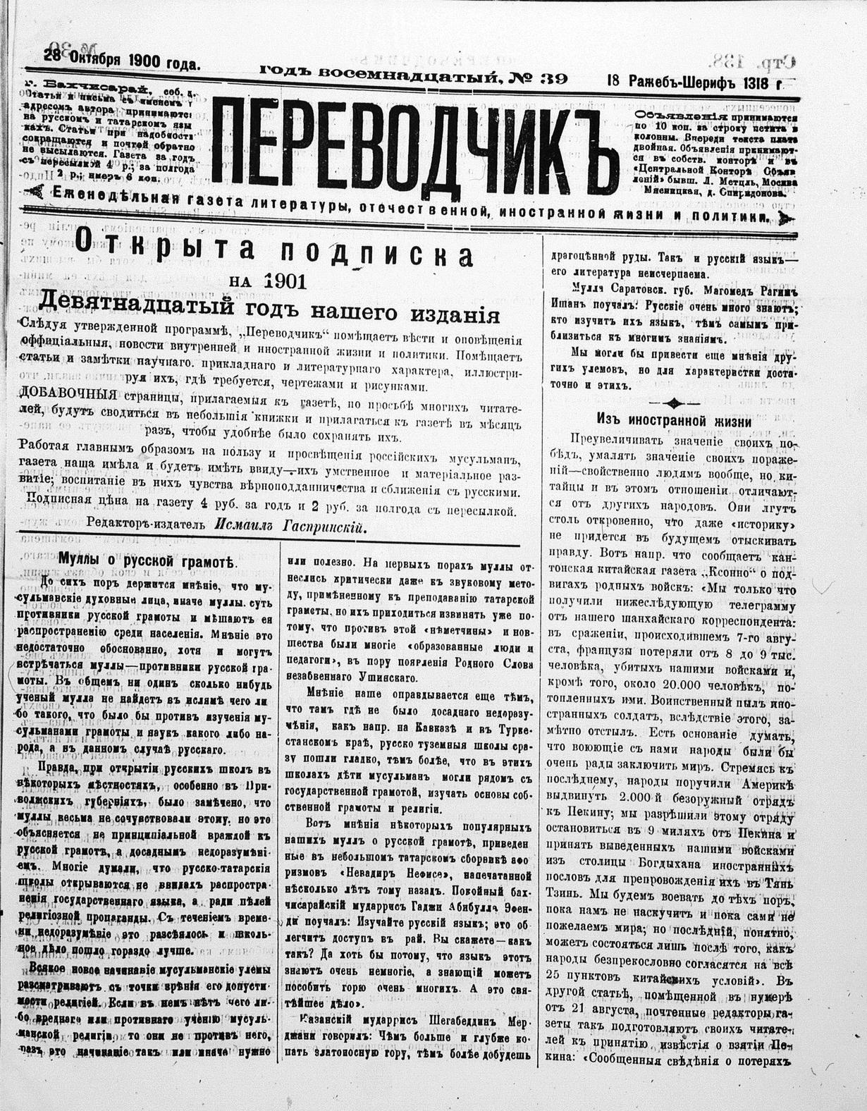 Turkish-Russian newspaper published in Crimea by İsmail Gaspıralı.