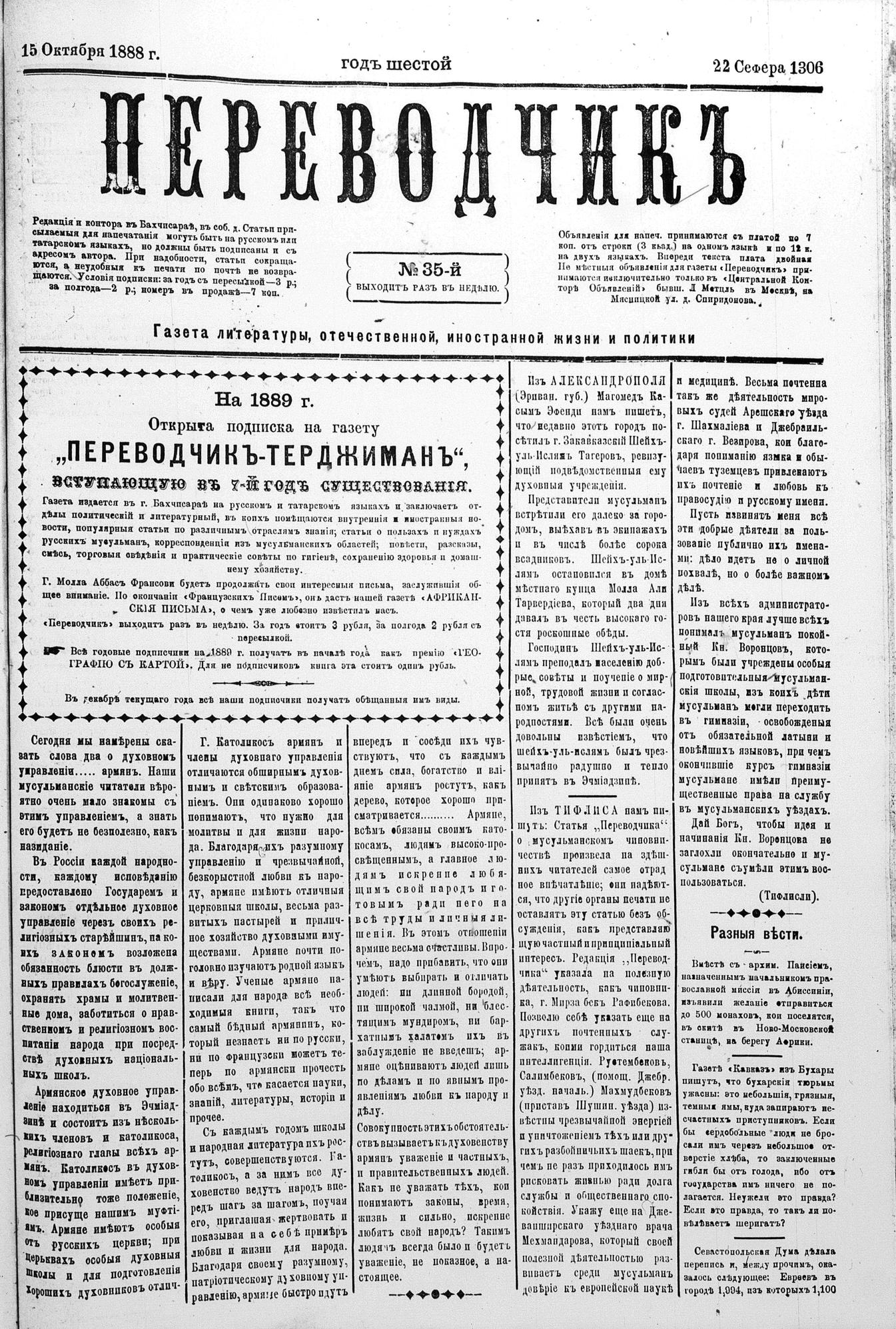 Turkish-Russian newspaper published in Crimea by İsmail Gaspıralı.