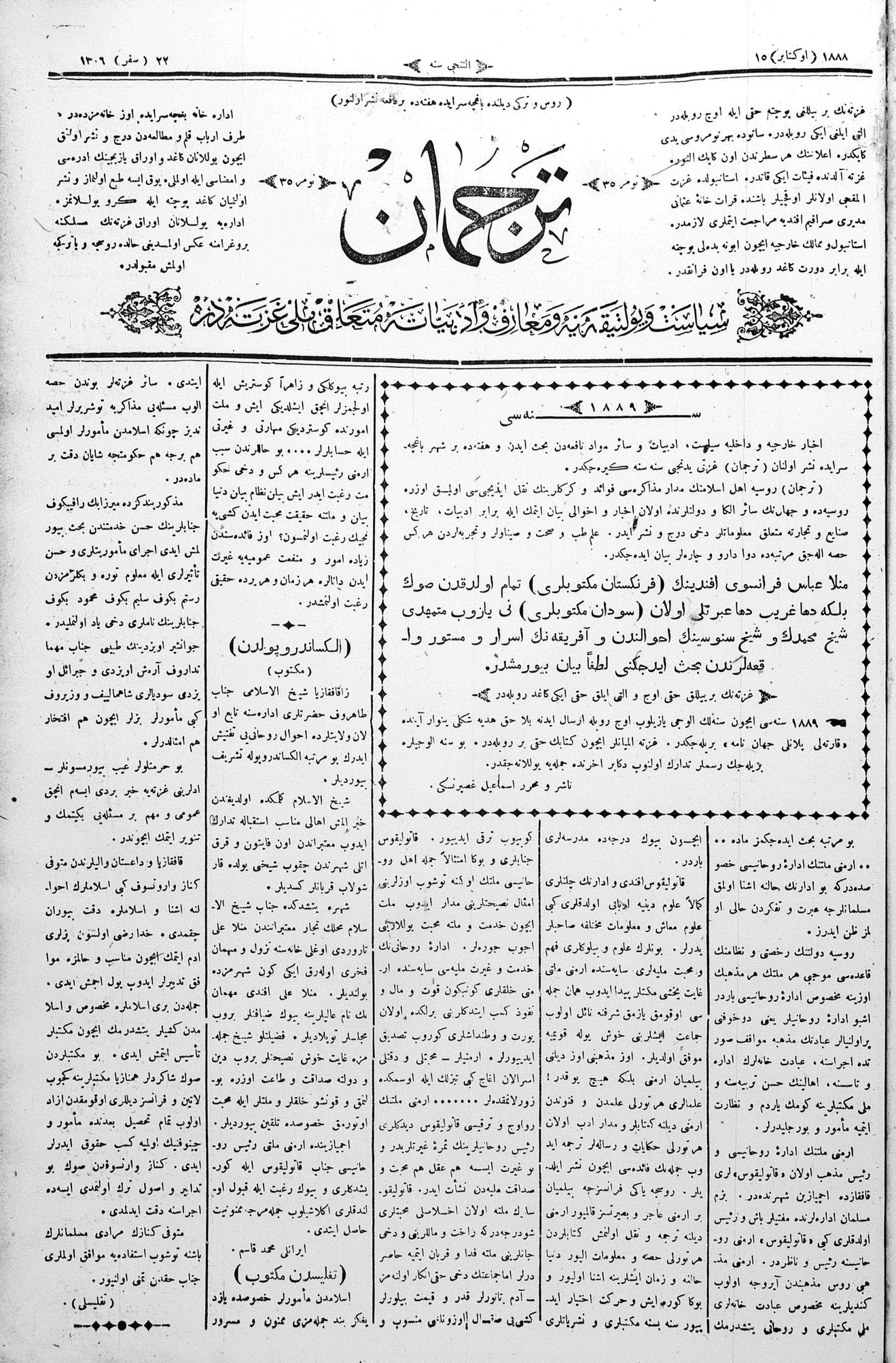 The name of the newspaper changed to Tercüman-ı Ahval-i Zaman in 1905. In 1909, it started to be published under its first name, Tercüman.