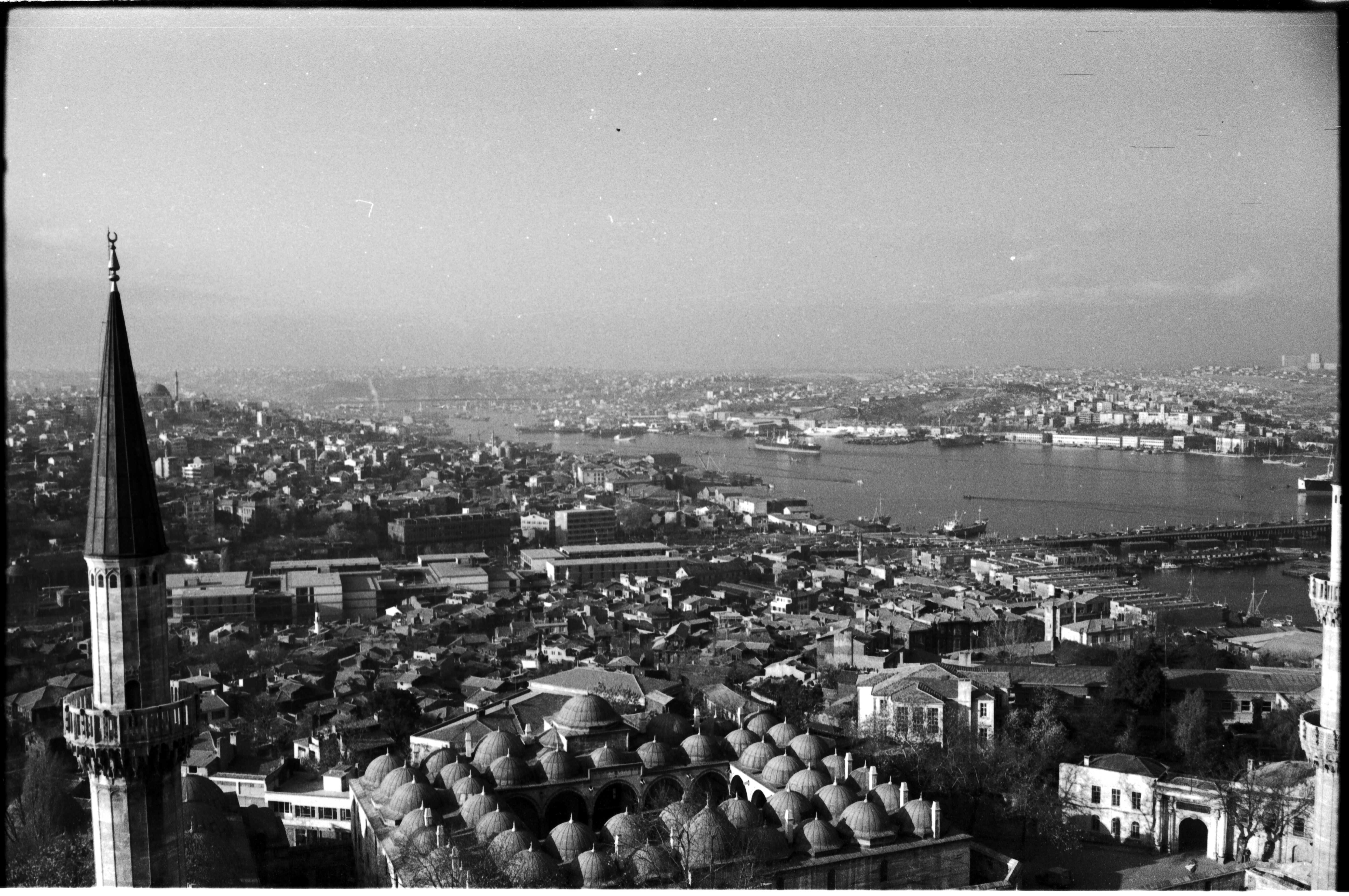 Süleymaniye Camii minaresinin üçüncü şerefesinden Cibali ve Kasımpaşa civarı ile Atatürk (Unkapanı) Köprüsü'nün görünüşü