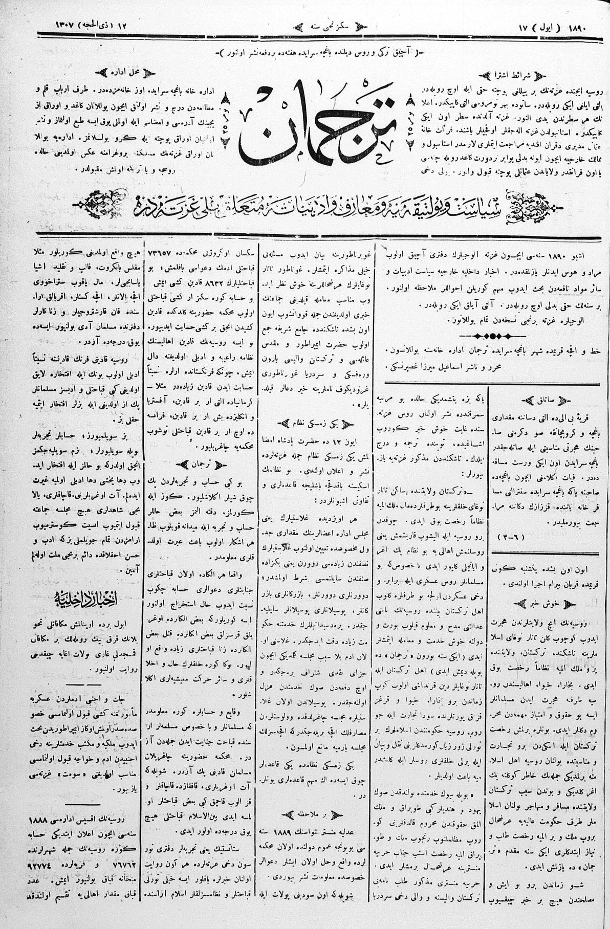 Turkish-Russian newspaper published in Crimea by İsmail Gaspıralı.