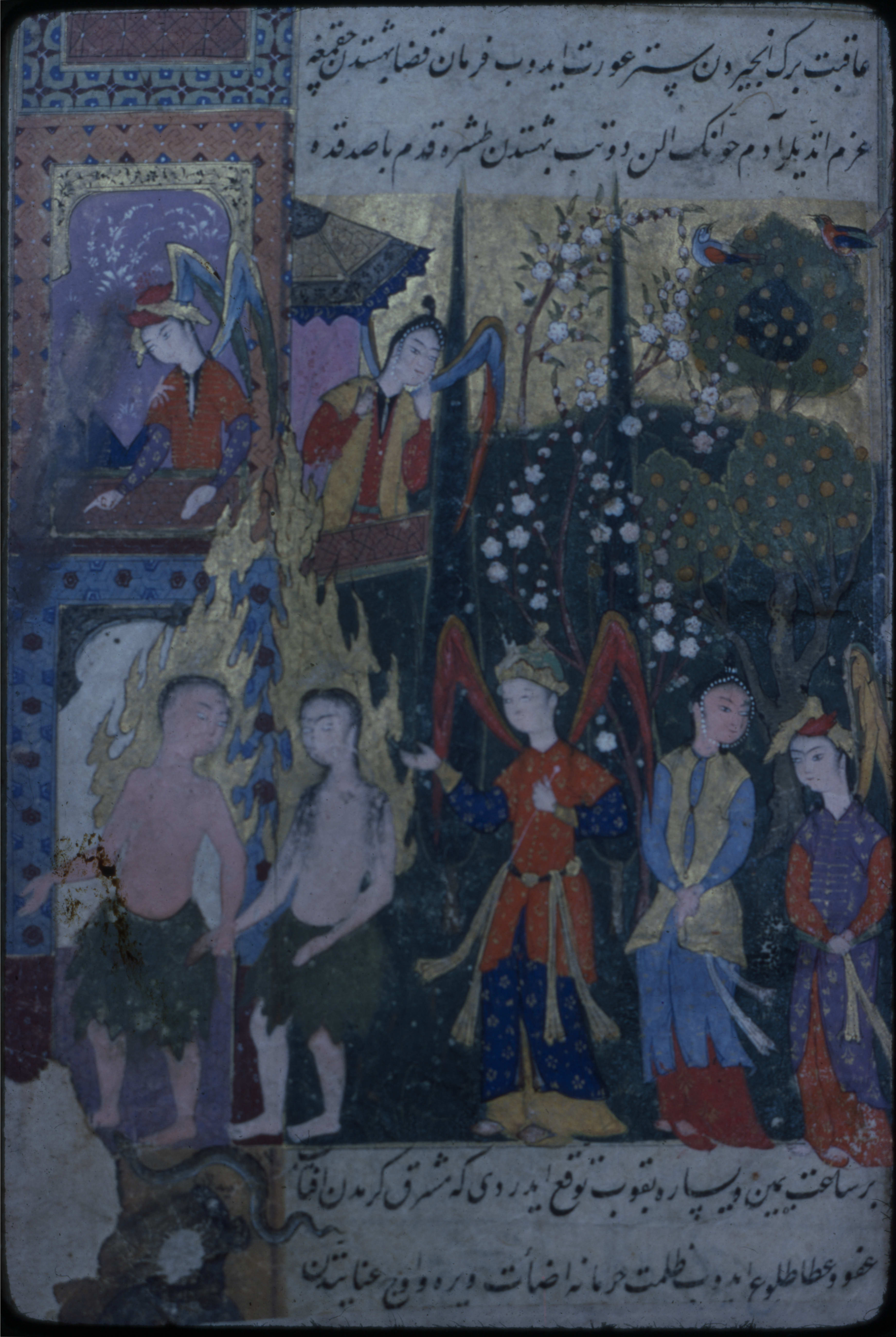 Süleymaniye Kütüphanesi Fatih 4321 numarada kayıtlı bulunan Fuzuli'nin Hadikatu's-sueda adlı kitabının 9a varağındaki Hz. Adem ile Havva'nın Cennet'ten kovulmasını gösteren minyatür