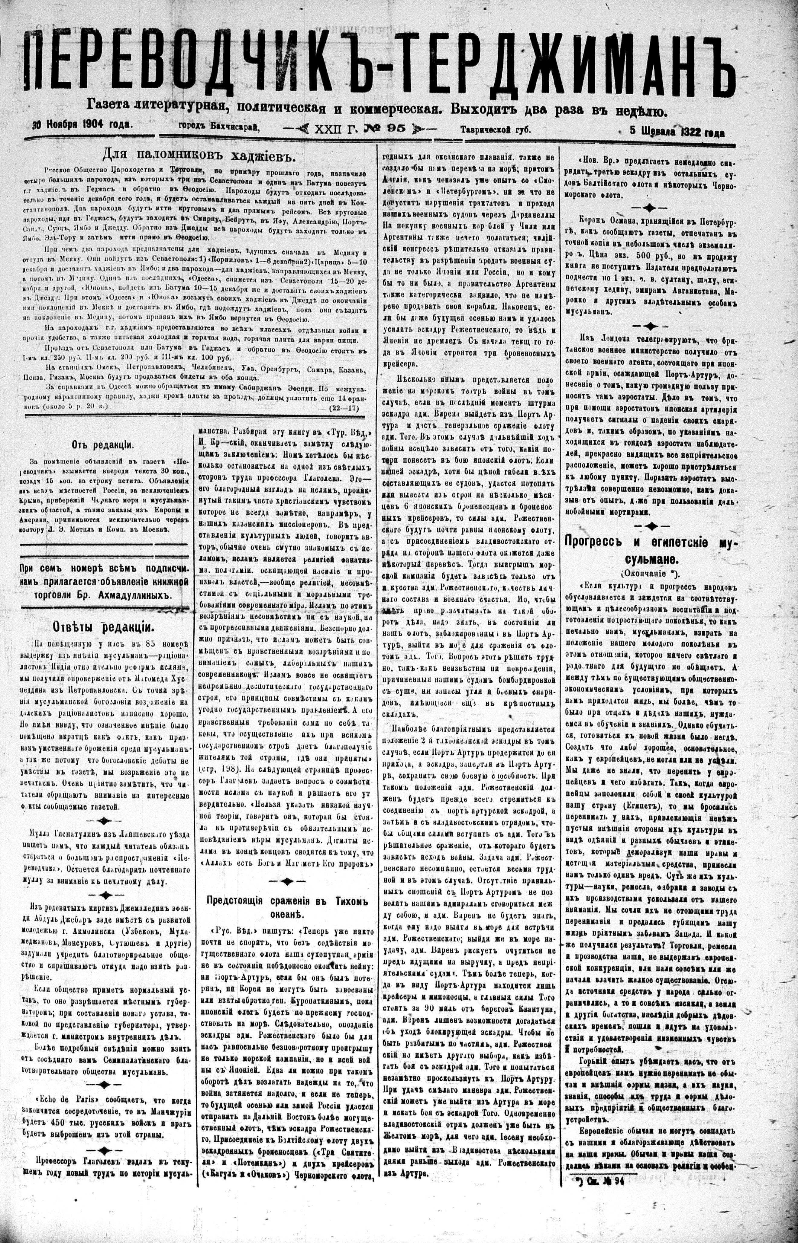 Tercüman, 30 November 1904 Year 22 No 95