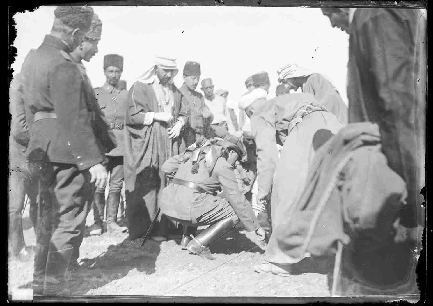 Şerif Ali Haydar, Fahreddin Paşa ve Basri Paşa Medine'de telsiz telgraf istasyonunun temel atma törenine giderken ve temel atarken.
