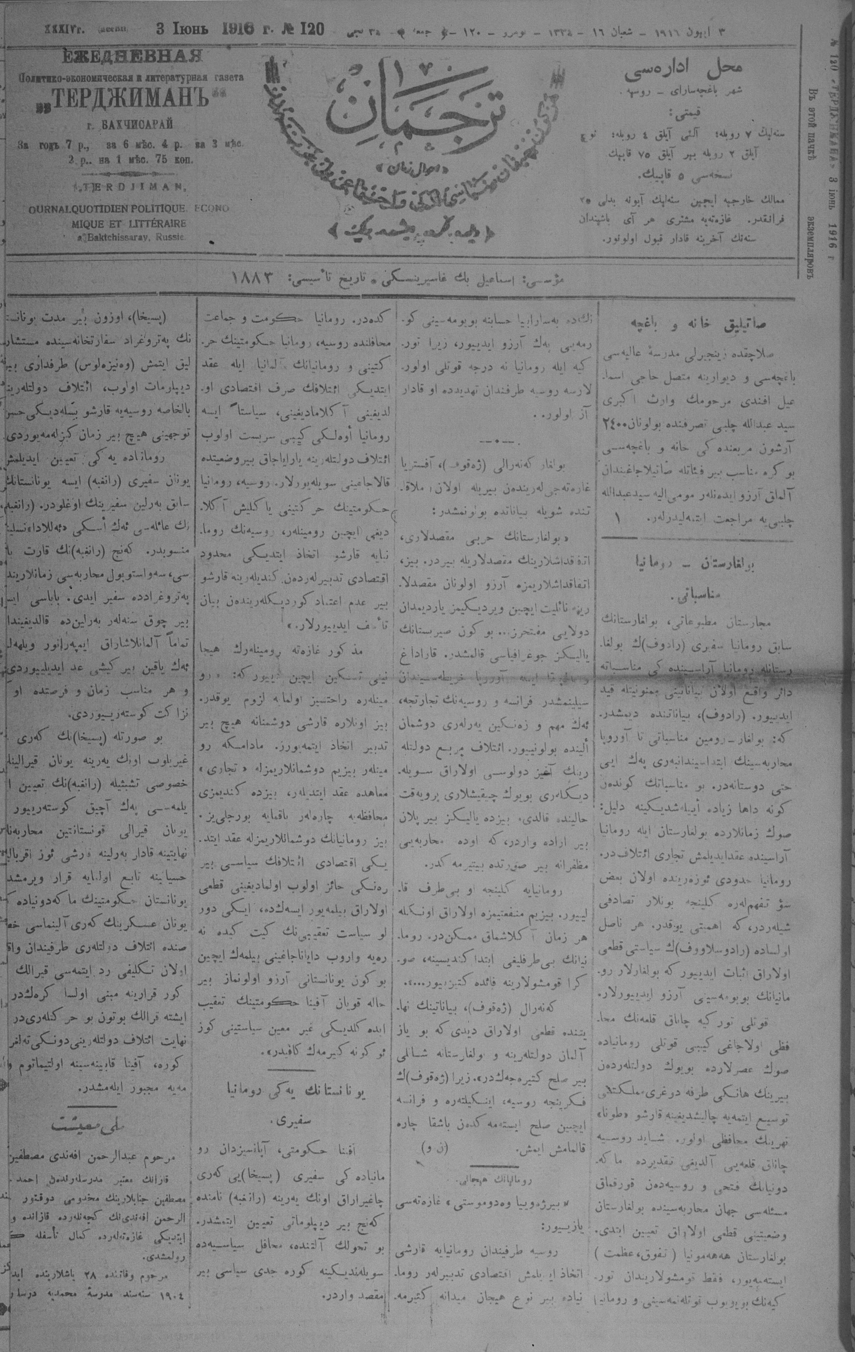 Tercüman, 03 June 1916 Year 34 No 120