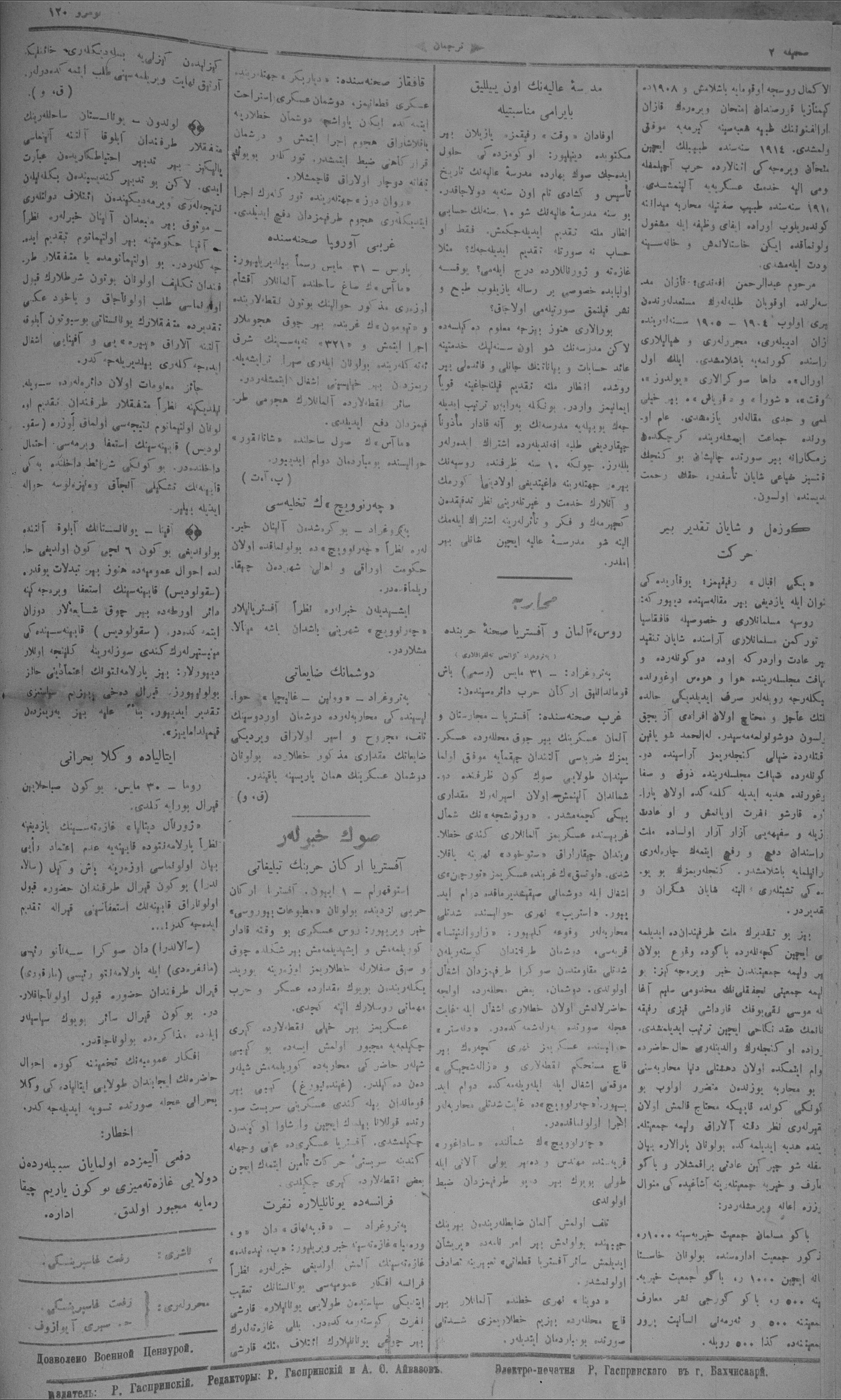 Turkish-Russian newspaper published in Crimea by İsmail Gaspıralı.