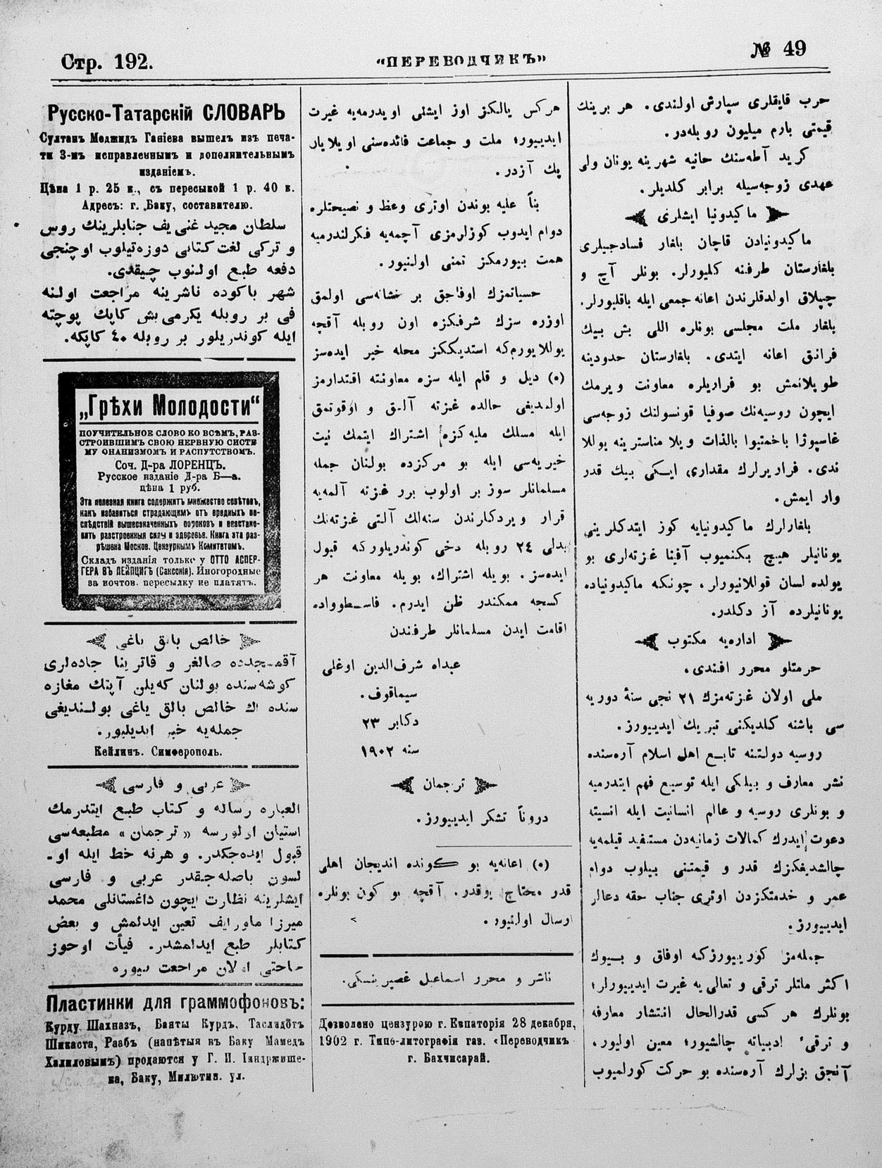 Turkish-Russian newspaper published in Crimea by İsmail Gaspıralı.