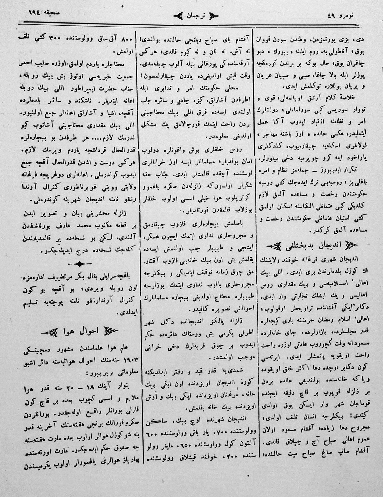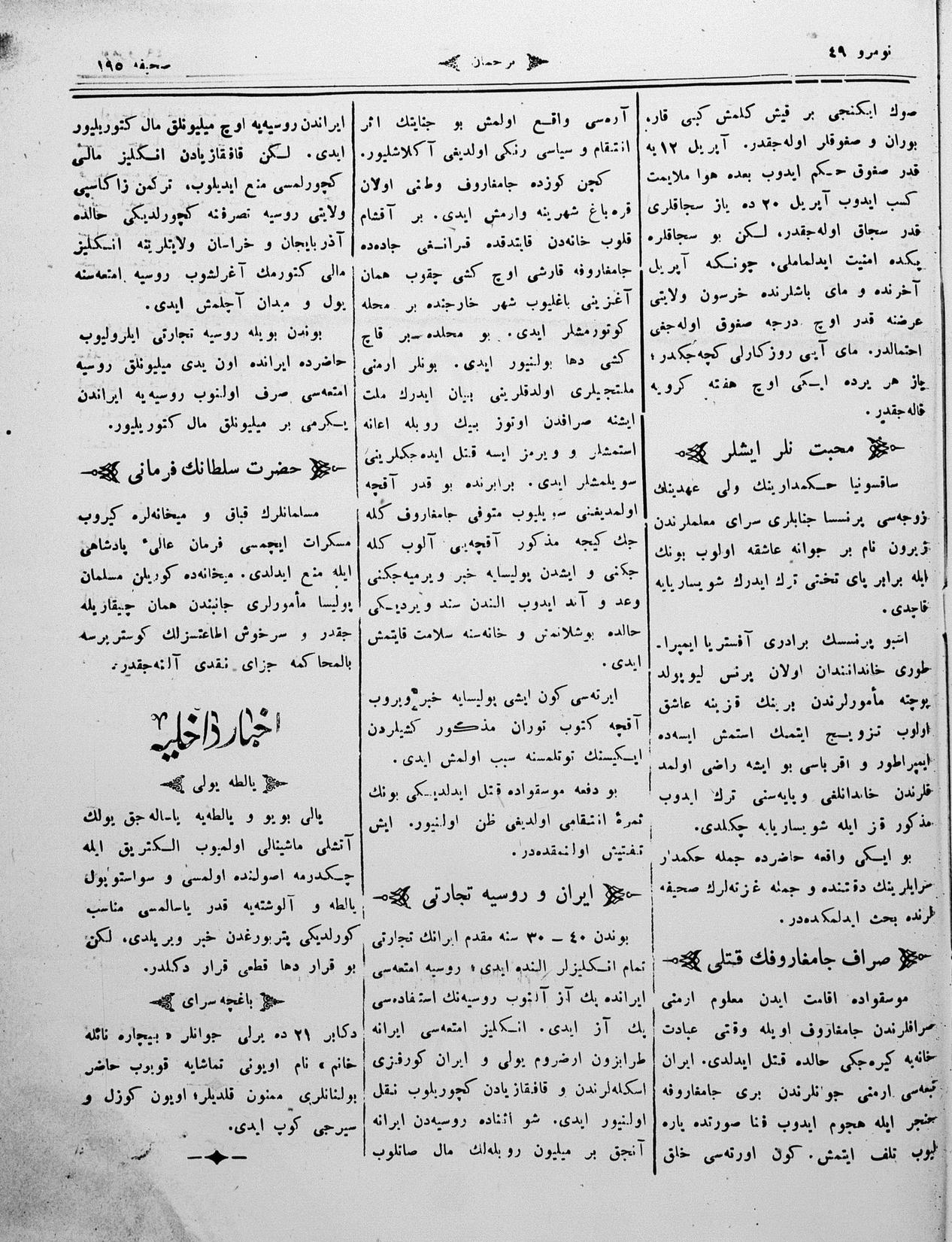 The name of the newspaper changed to Tercüman-ı Ahval-i Zaman in 1905. In 1909, it started to be published under its first name, Tercüman.