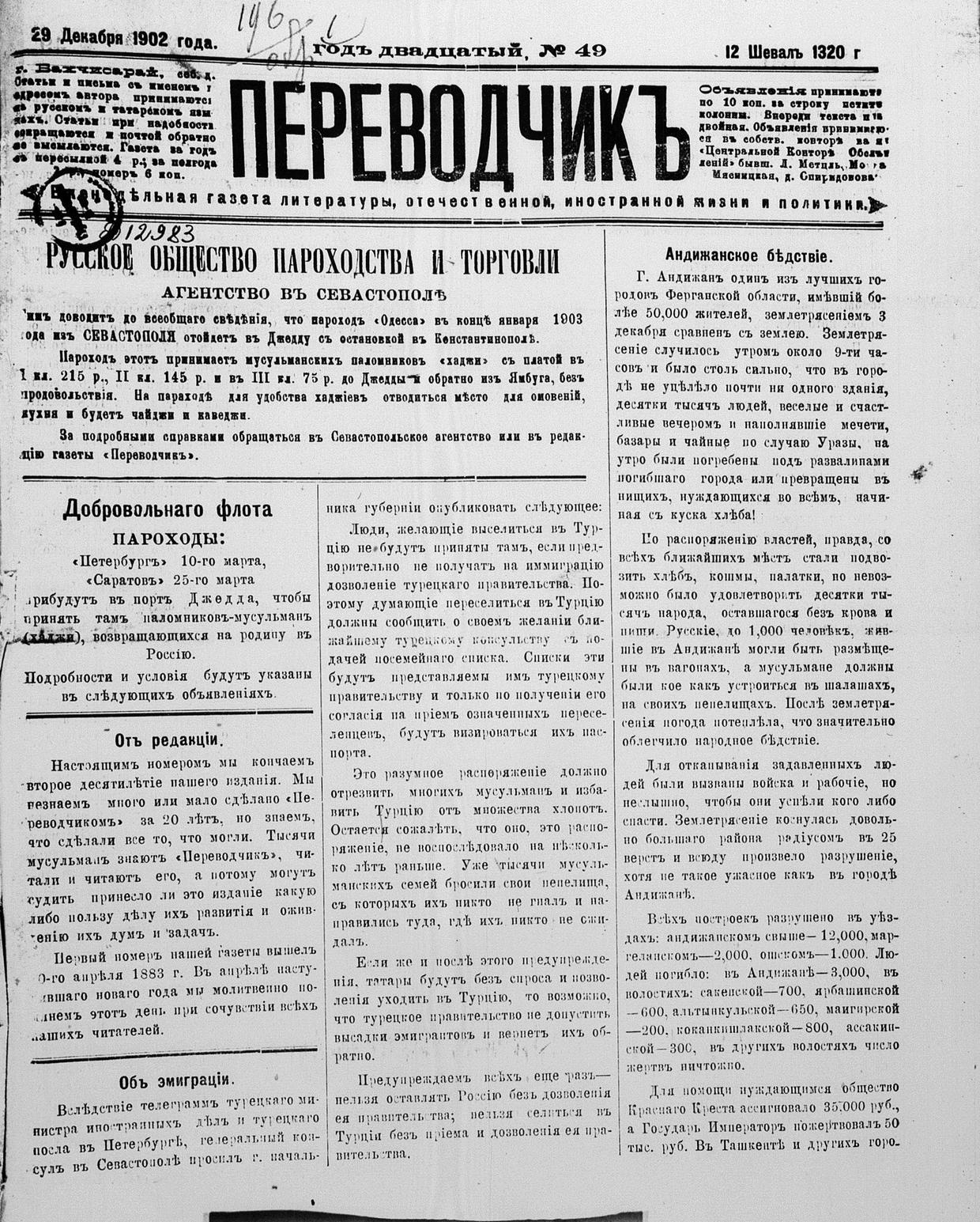 Different spellings of Tercüman: Terdzhiman, Terjuman, Perevodçik and Terjiman.