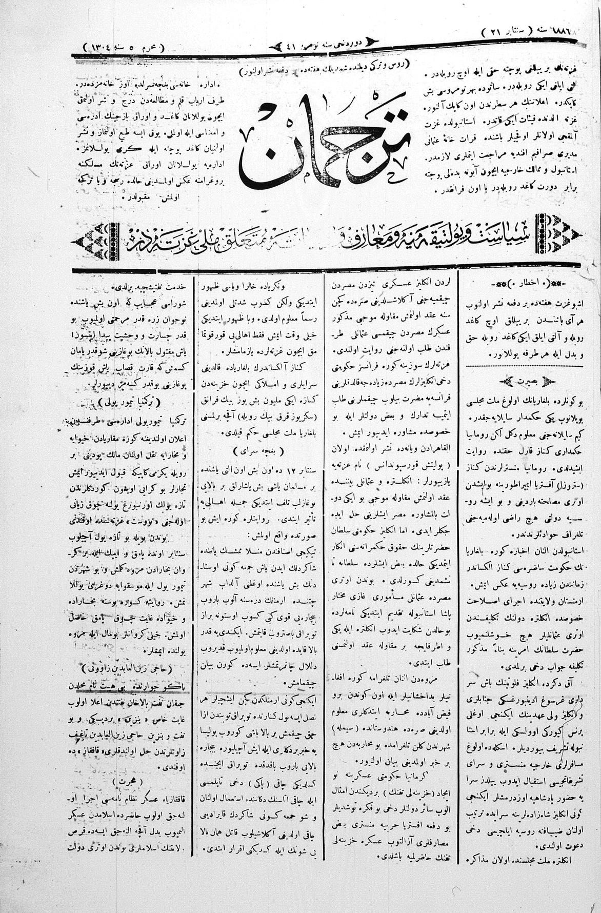The name of the newspaper changed to Tercüman-ı Ahval-i Zaman in 1905. In 1909, it started to be published under its first name, Tercüman.