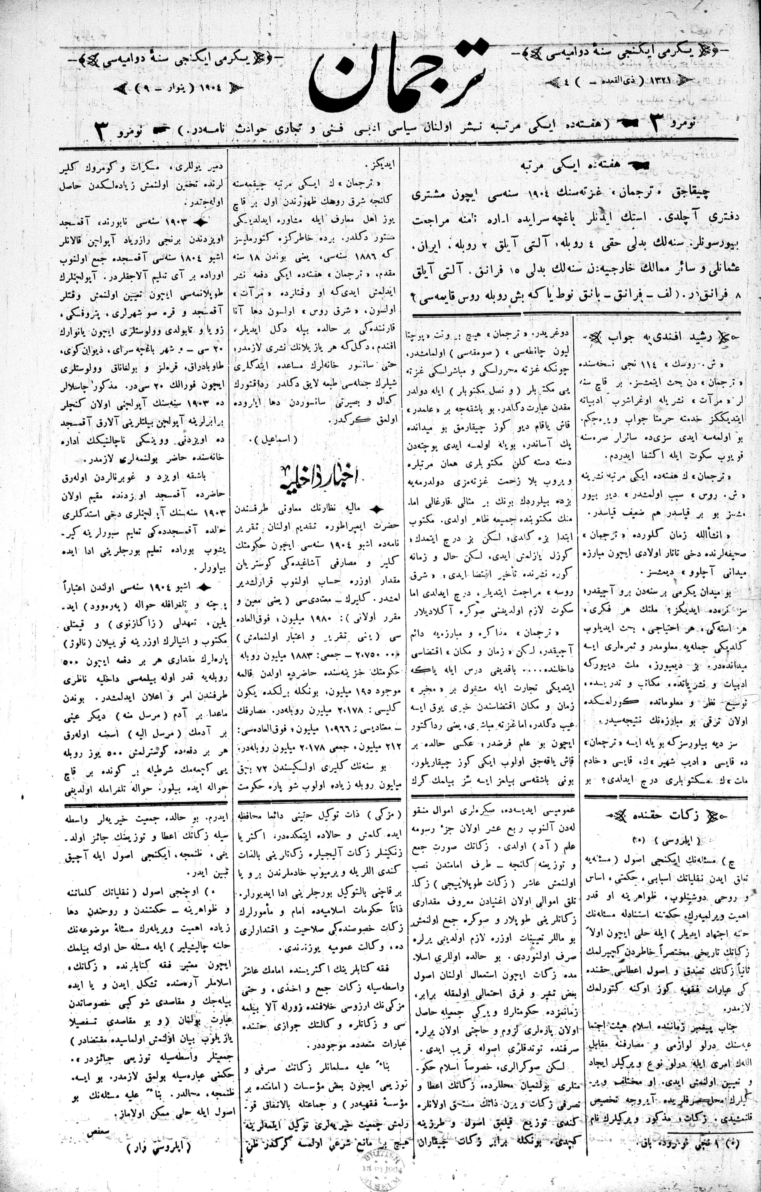 The name of the newspaper changed to Tercüman-ı Ahval-i Zaman in 1905. In 1909, it started to be published under its first name, Tercüman.
