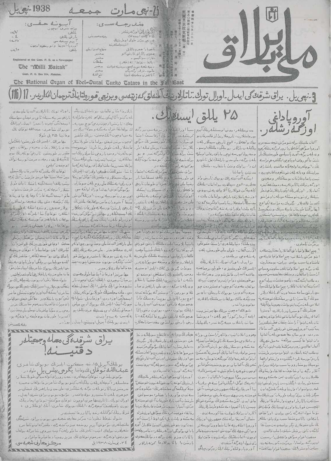The Milli Bayrak newspaper was written in Tatar with Arabic script.