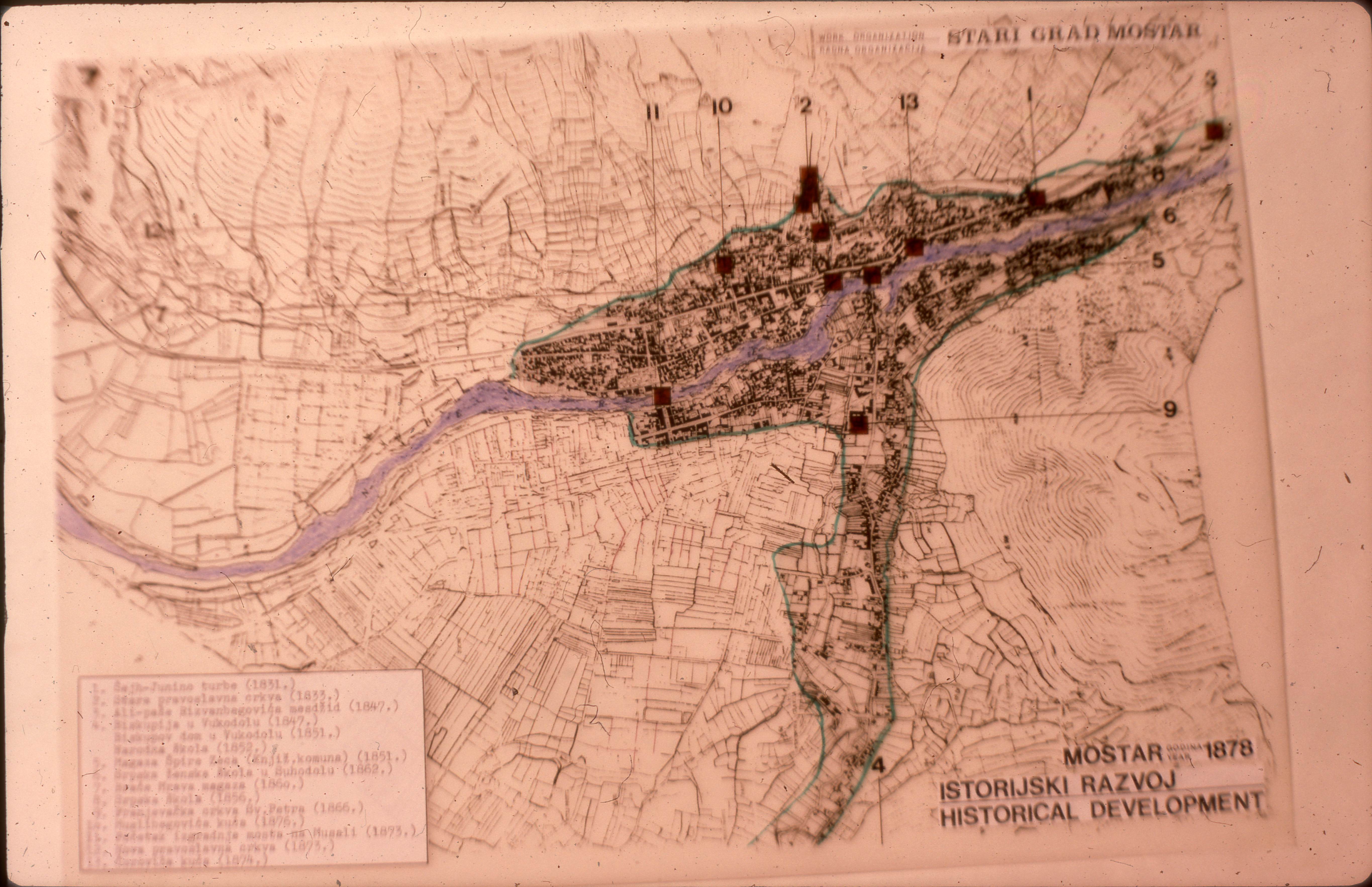 Historical development of Mostar in 1878