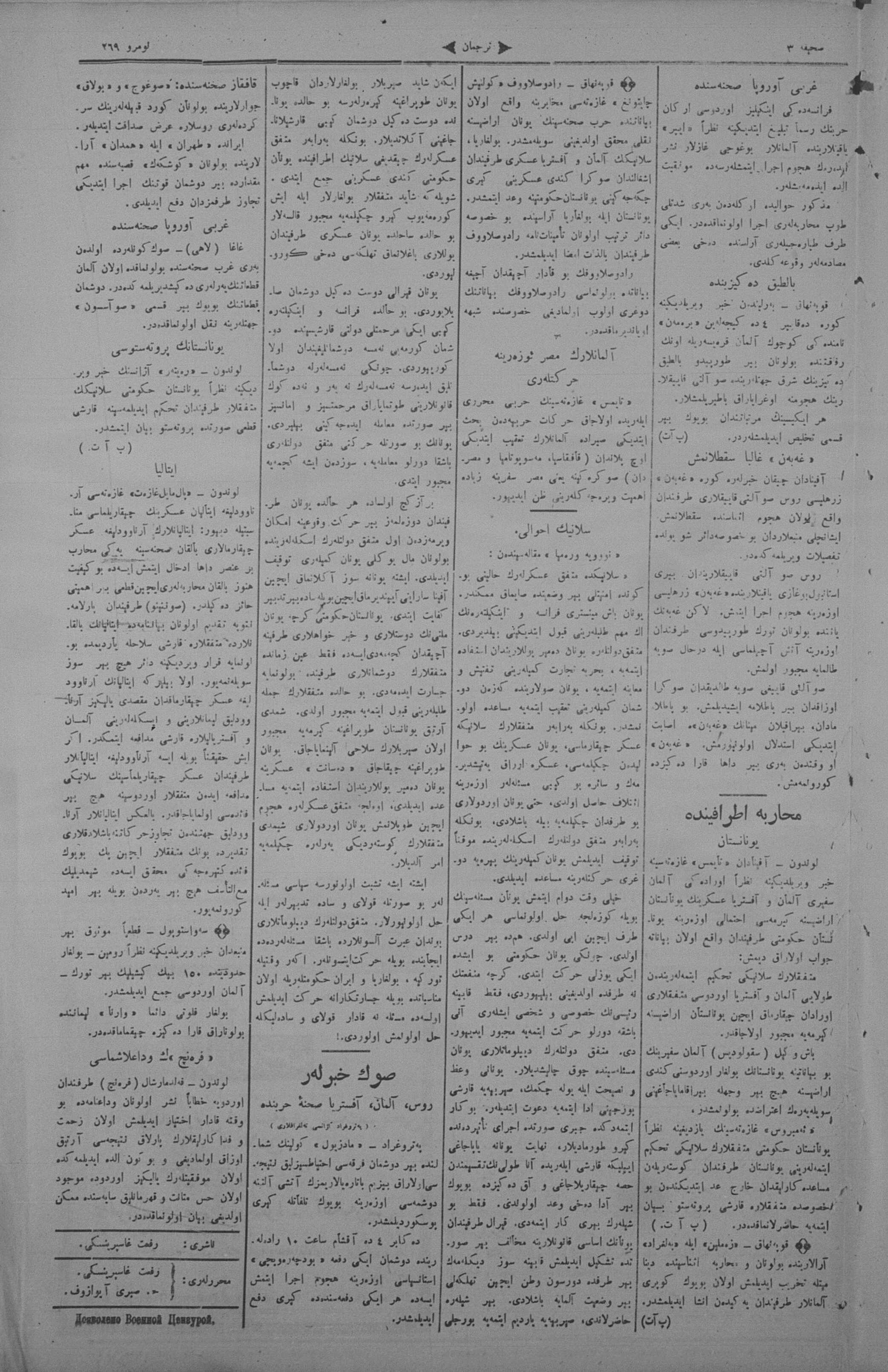 The name of the newspaper changed to Tercüman-ı Ahval-i Zaman in 1905. In 1909, it started to be published under its first name, Tercüman.