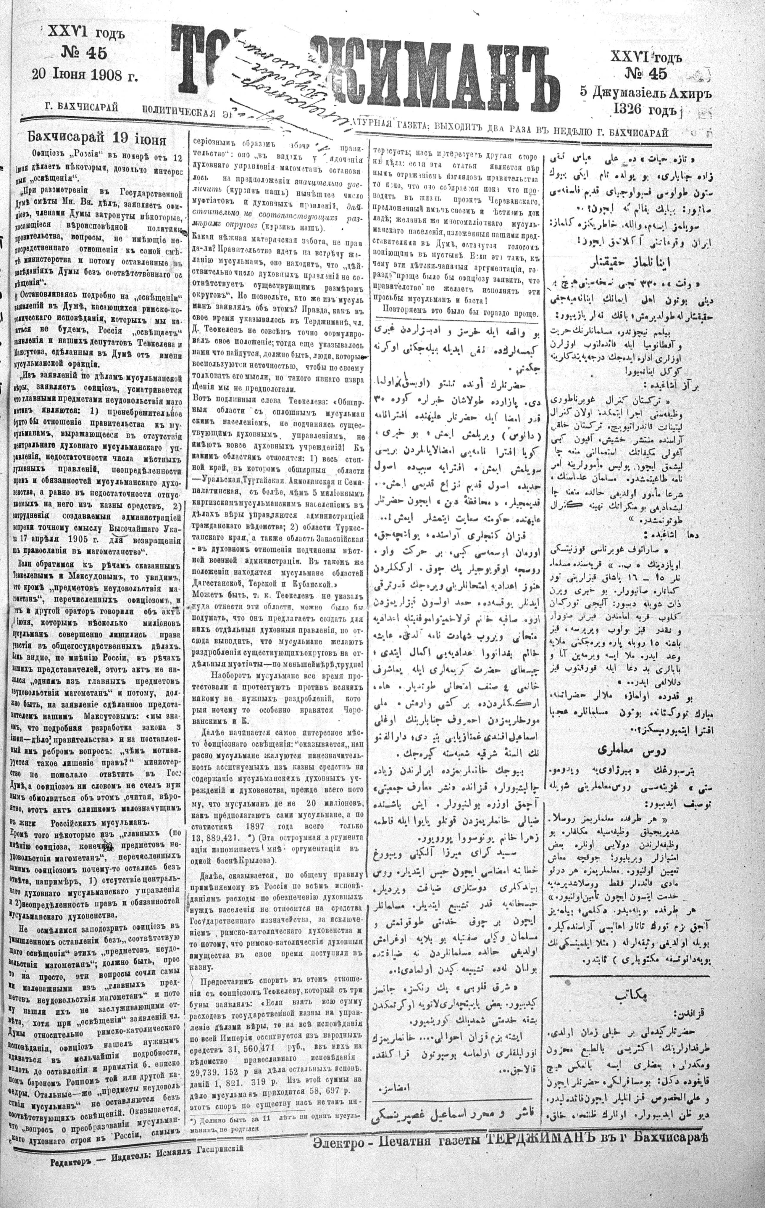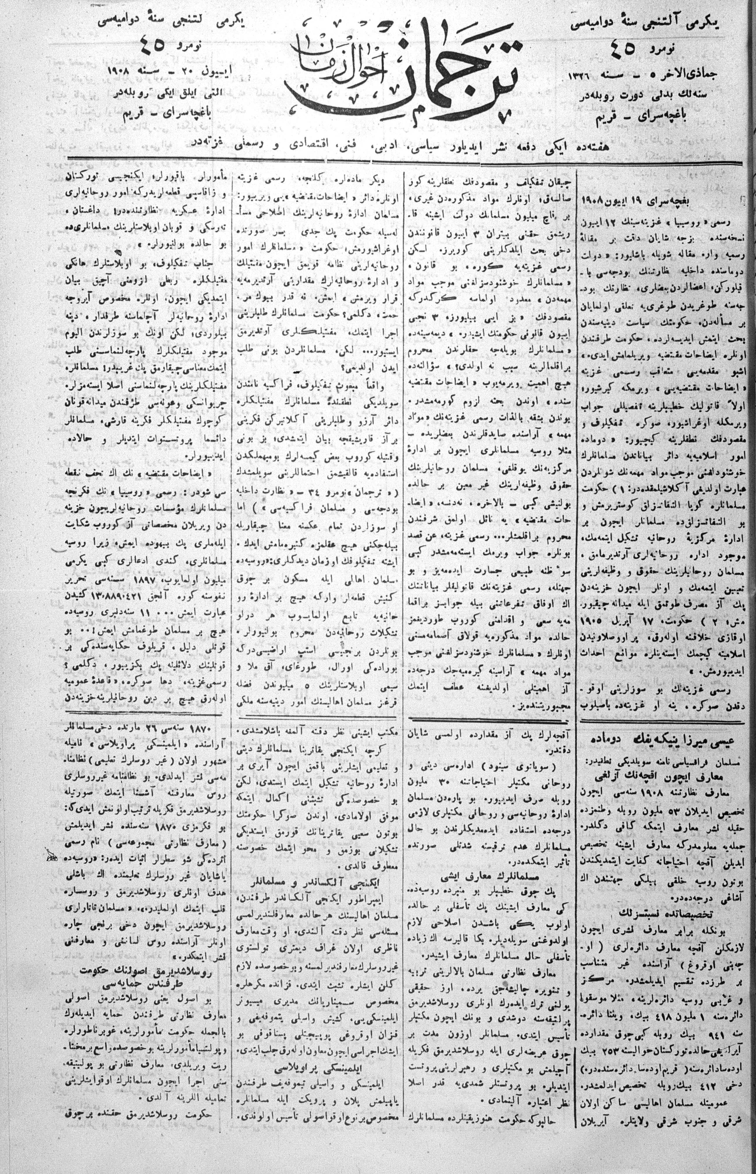 Tercüman, 20 June 1908 Year 26 No 45