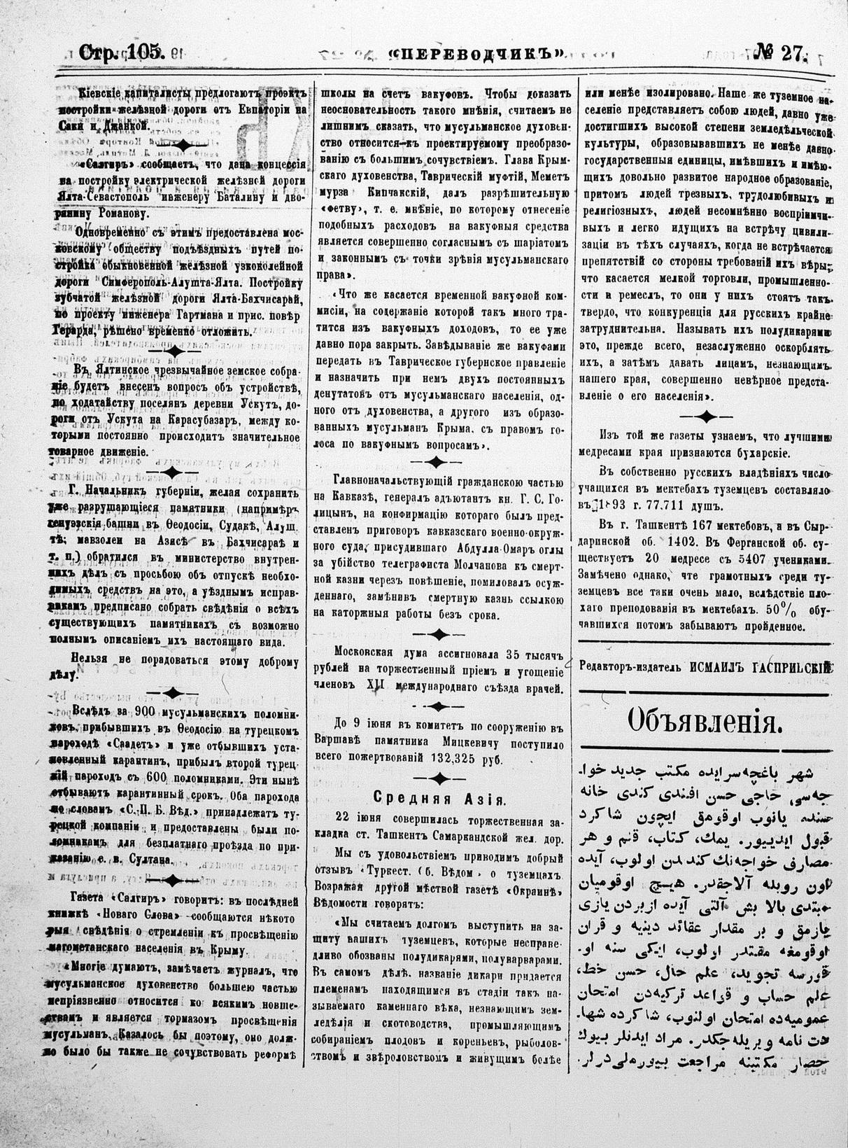 Turkish-Russian newspaper published in Crimea by İsmail Gaspıralı.