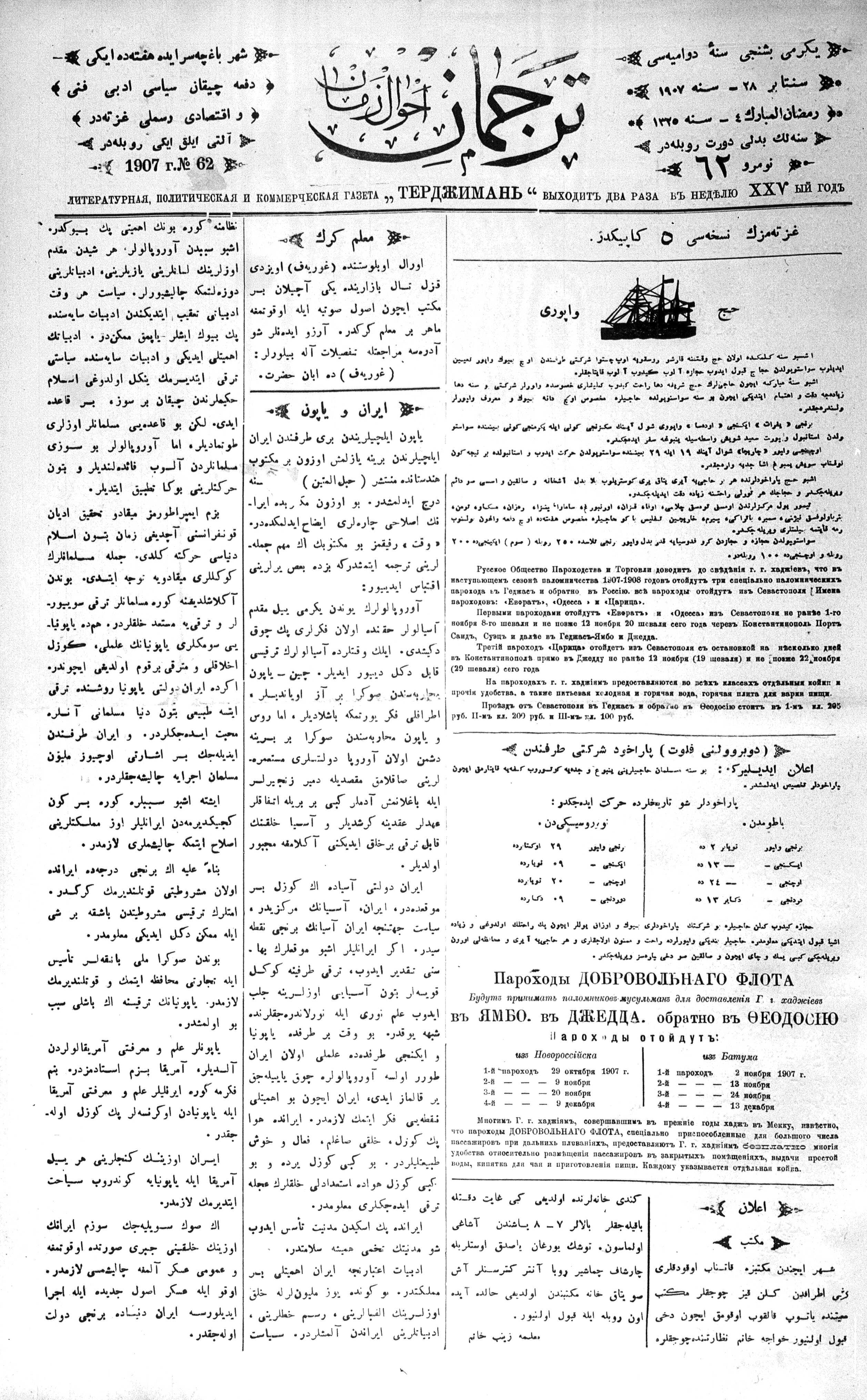 Tercüman, 28 September 1907 Year 25 No 62