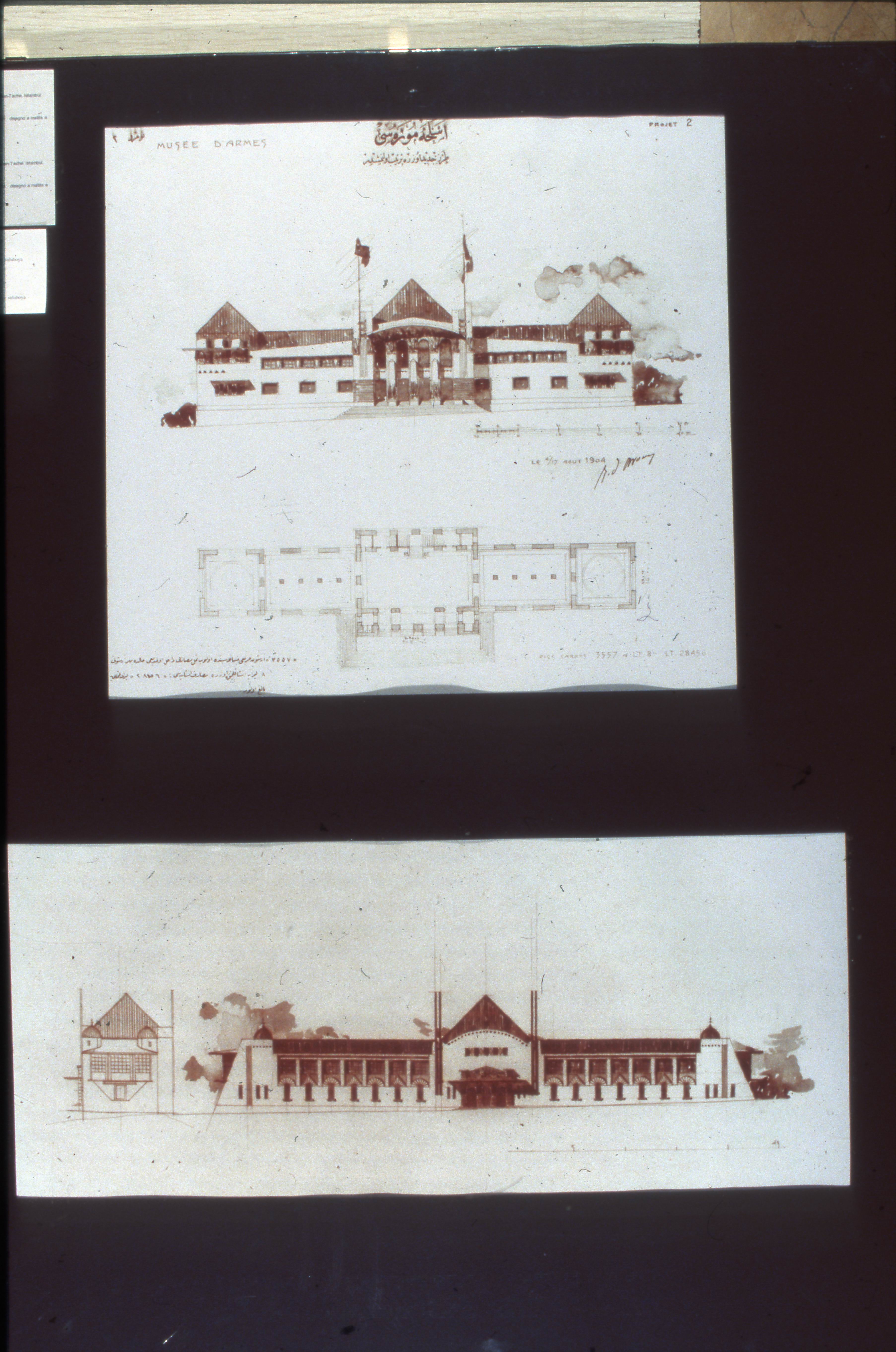 Alternative drawings and plans drawn by Raimondo D'Aronco for Nişantaşı Weapon Museum