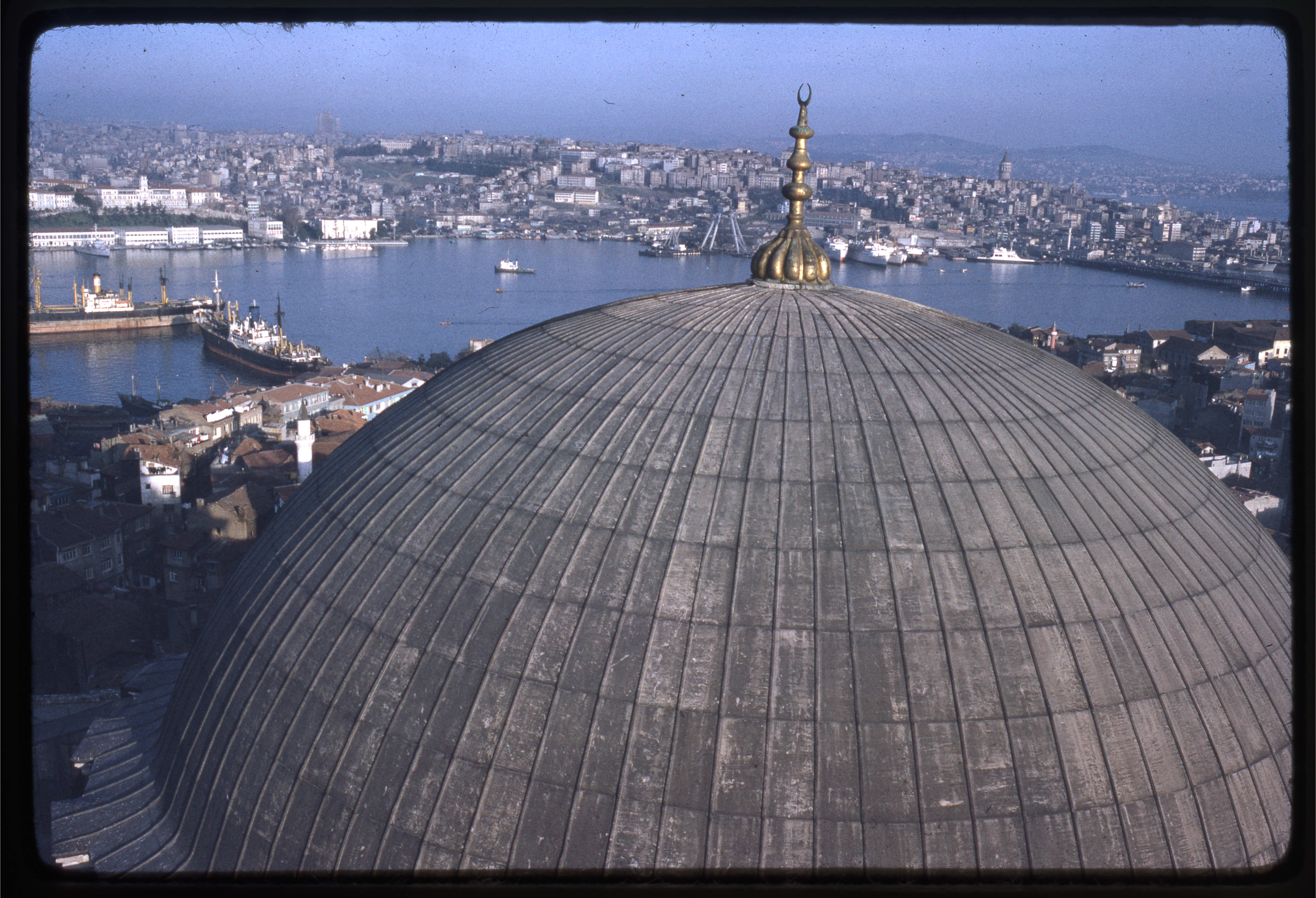 İstanbul-Sultan Selim Camii minaresinden caminin kubbesi ve Haliç'in görünüşü