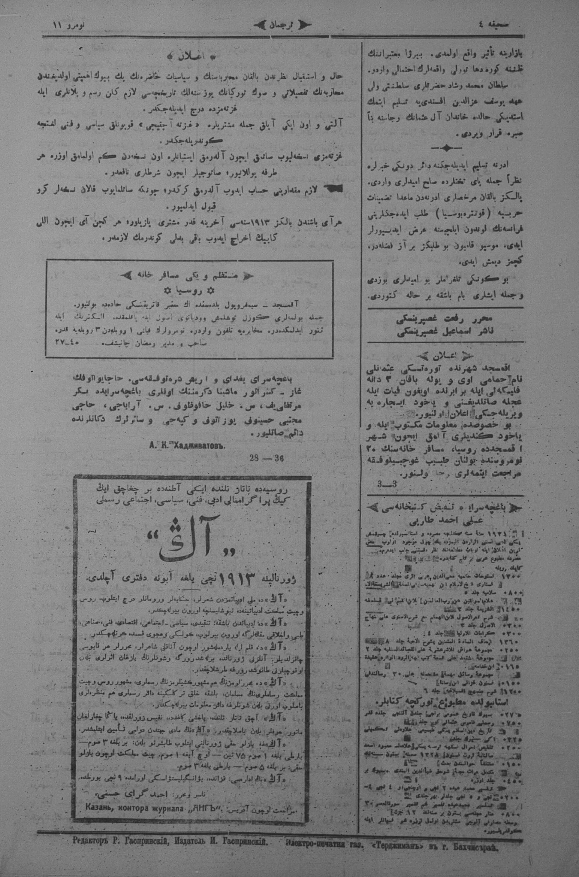 Turkish-Russian newspaper published in Crimea by İsmail Gaspıralı.