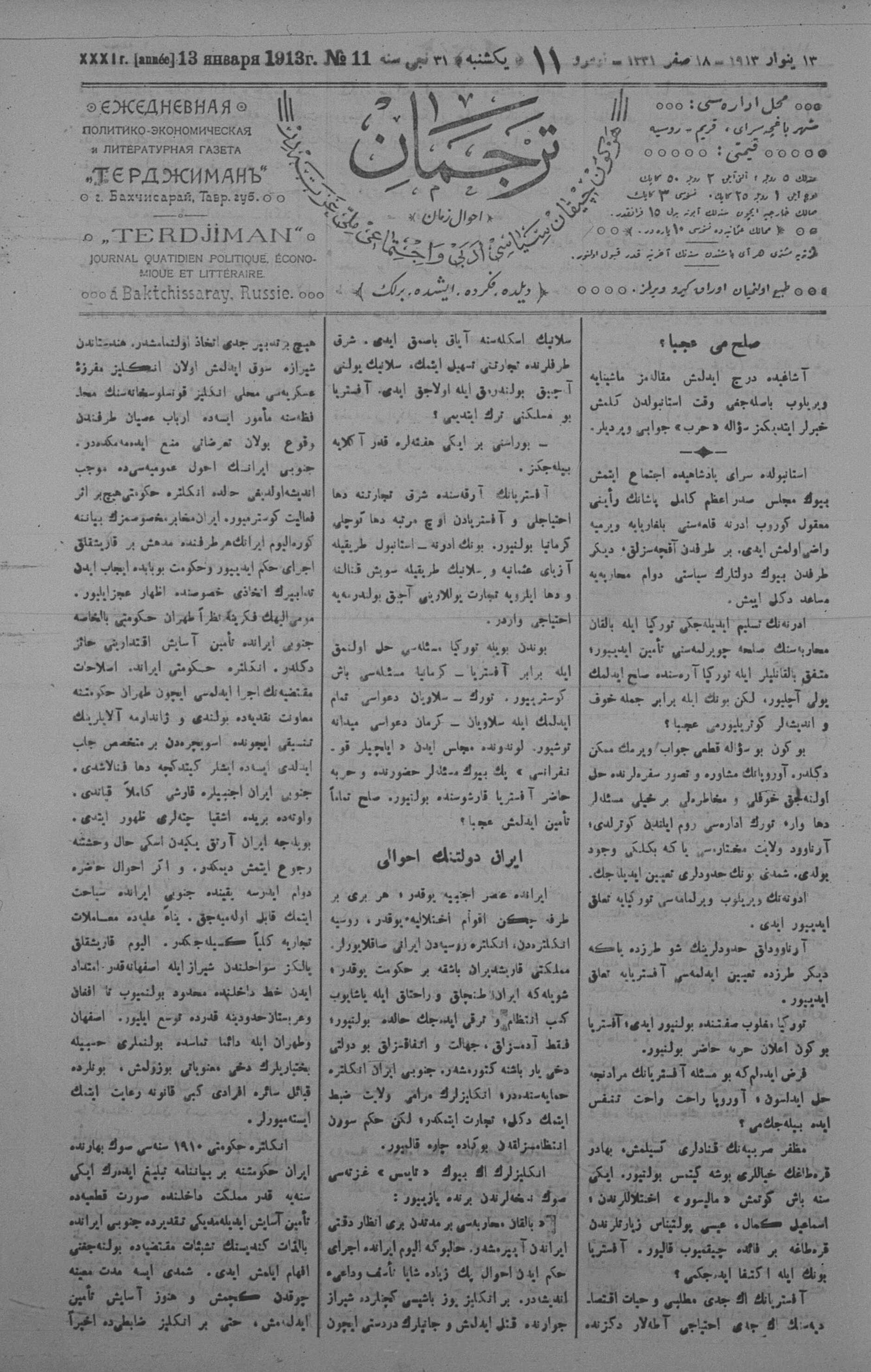 Tercüman, 13 January 1913 Year 31 No 11
