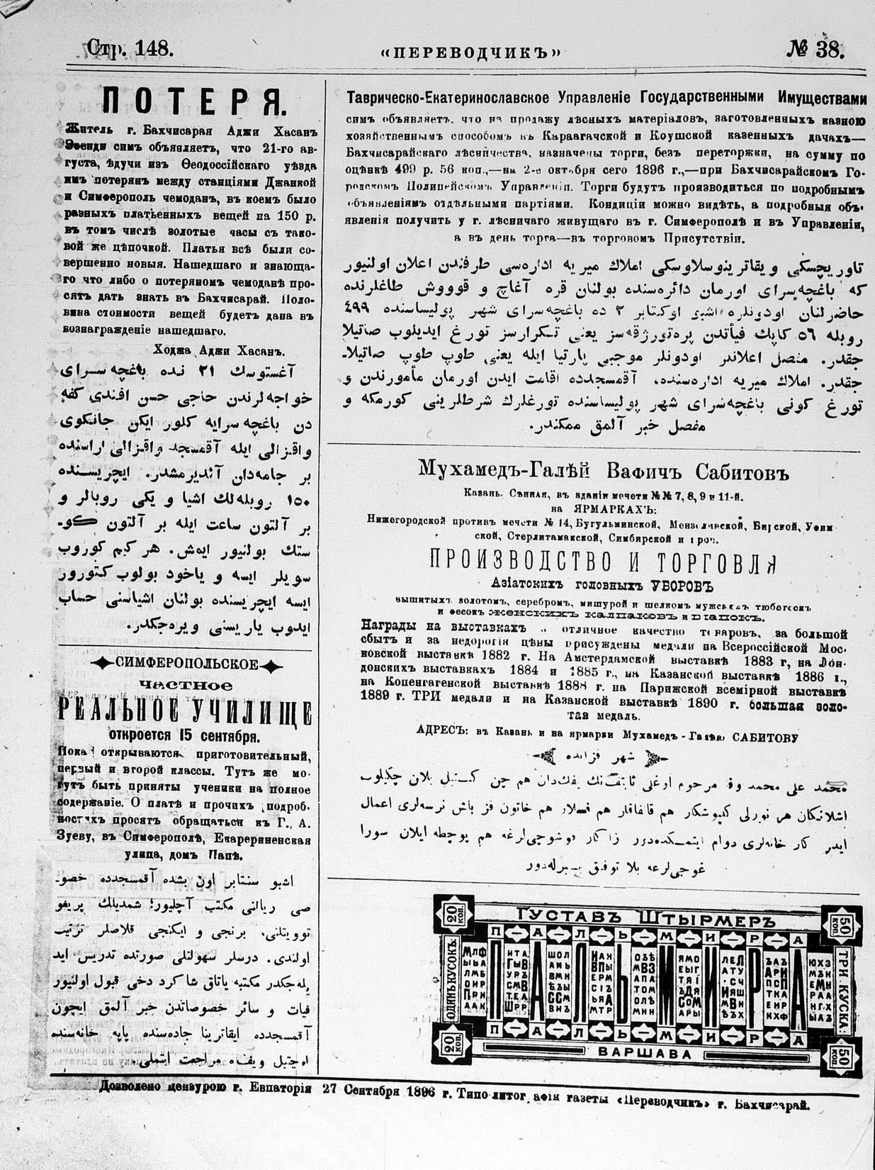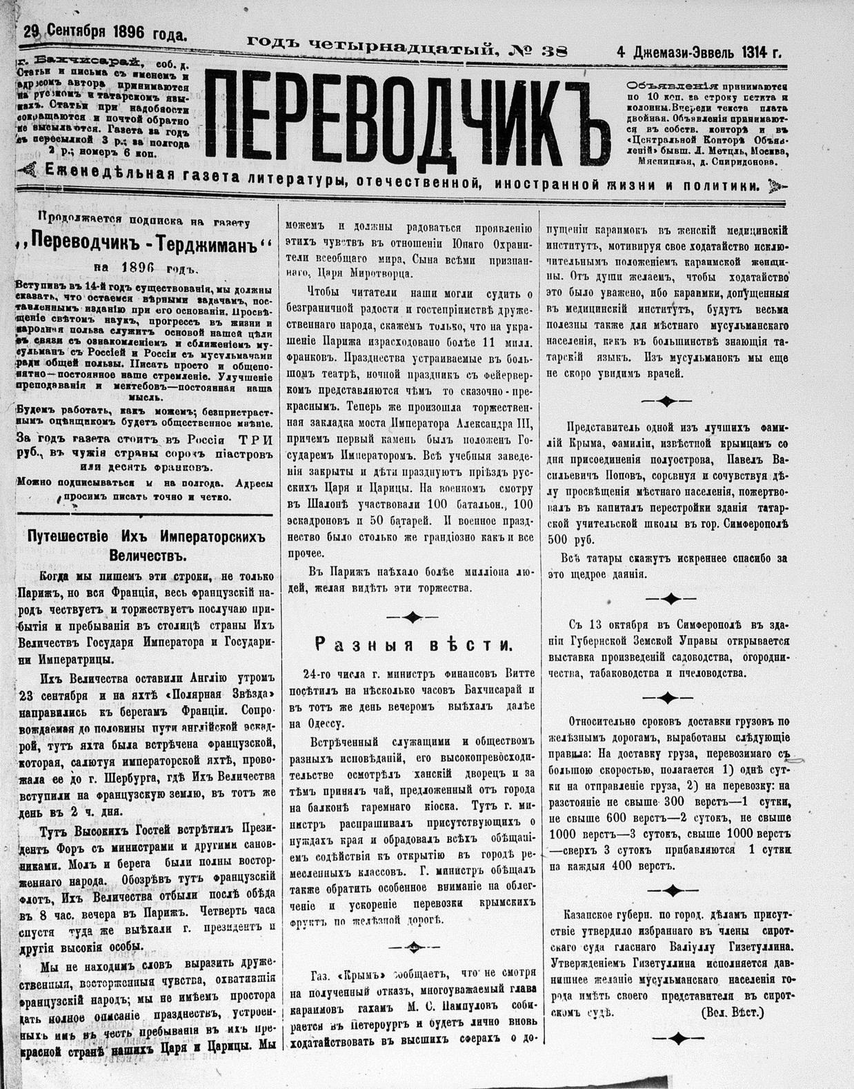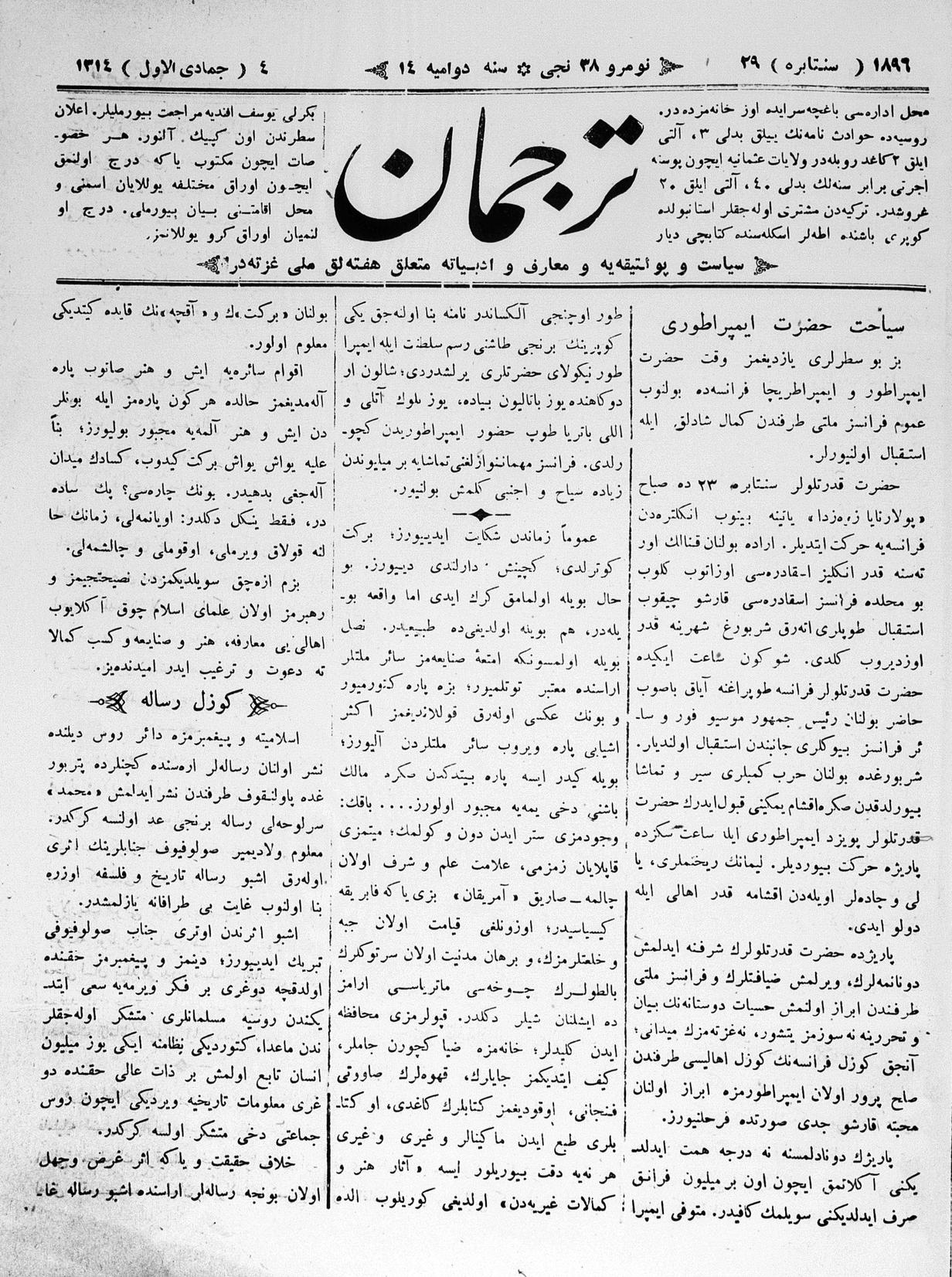 Tercüman, 29 September 1896 Year 14 No 38