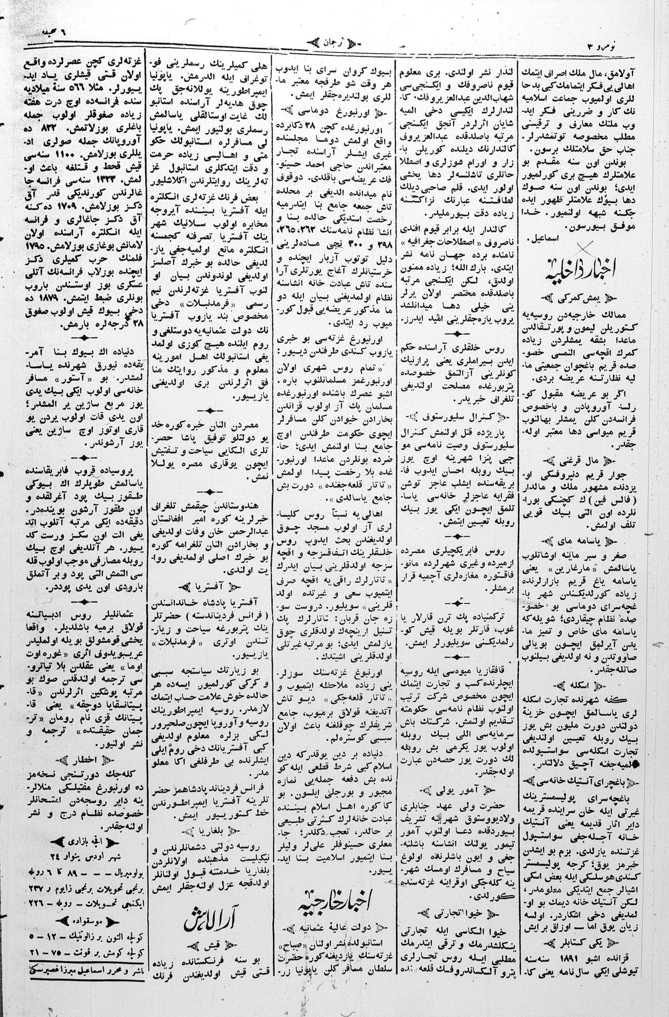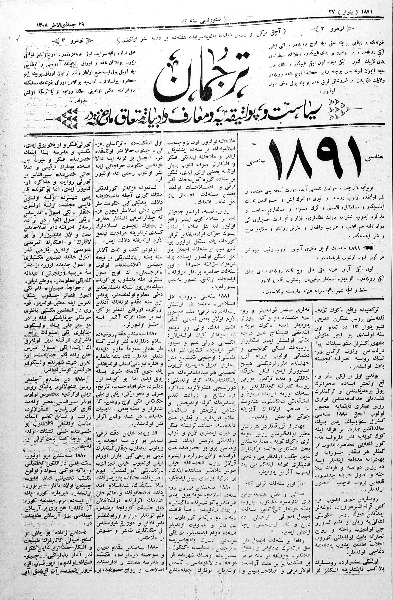 Tercüman, 27 January 1891 Year 9 No 3