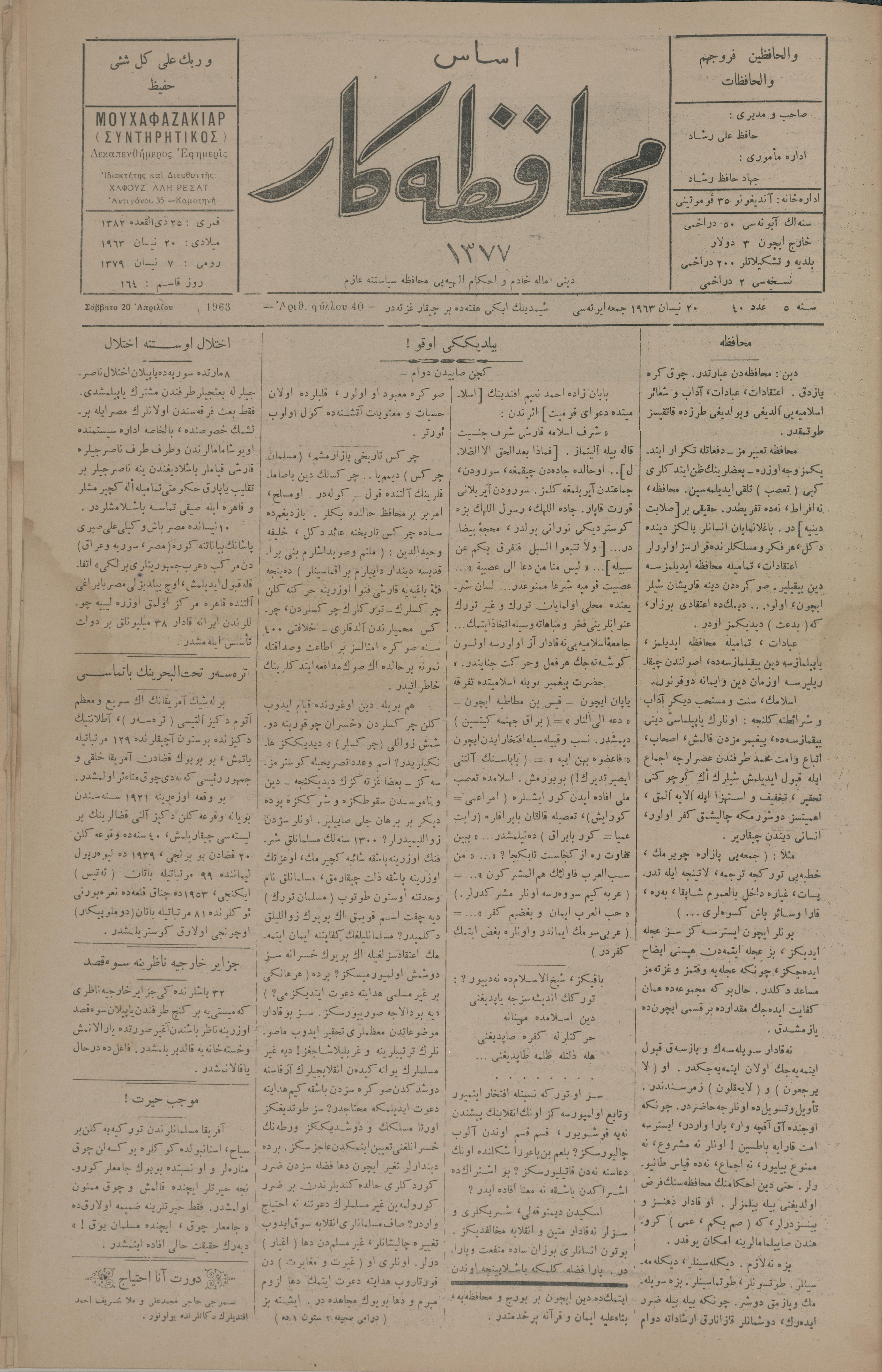 Esas muhafazakâr 1377, 20 Nisan 1963 Sene 5 Aded 40