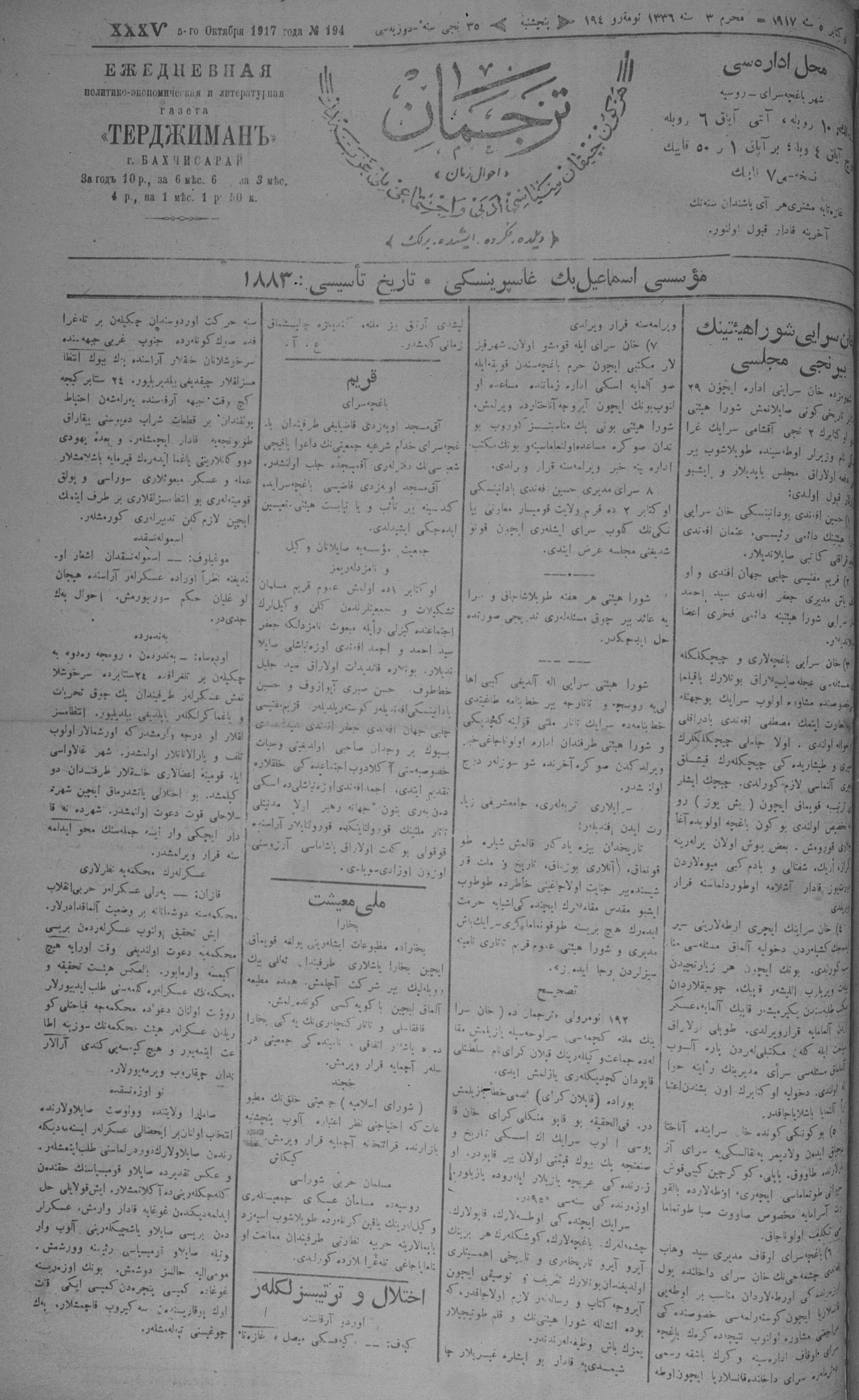 Turkish-Russian newspaper published in Crimea by İsmail Gaspıralı.