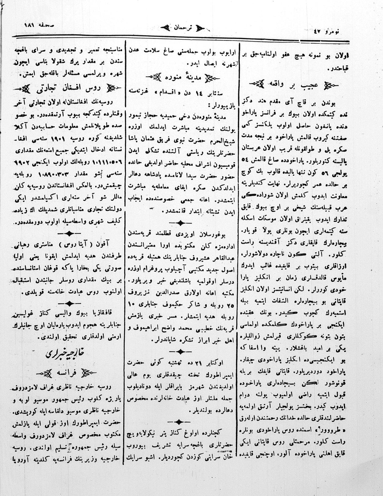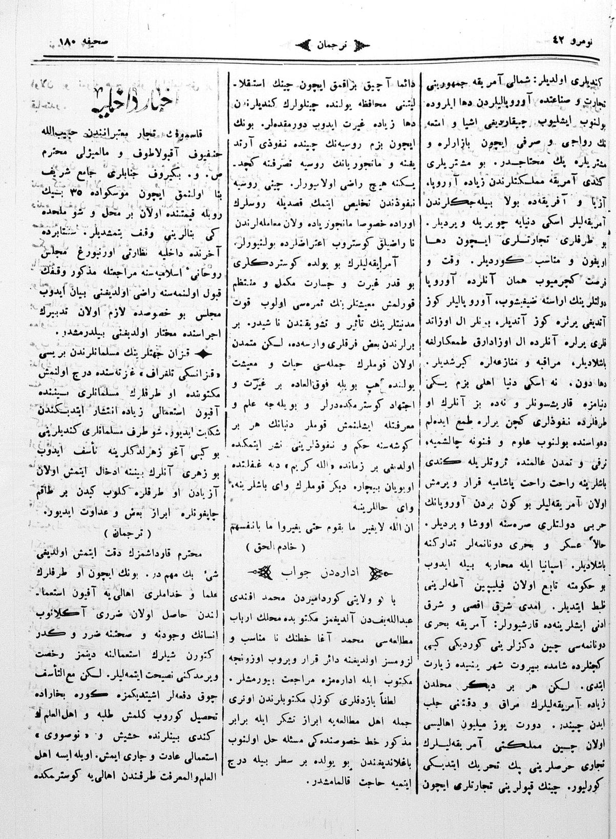 The name of the newspaper changed to Tercüman-ı Ahval-i Zaman in 1905. In 1909, it started to be published under its first name, Tercüman.