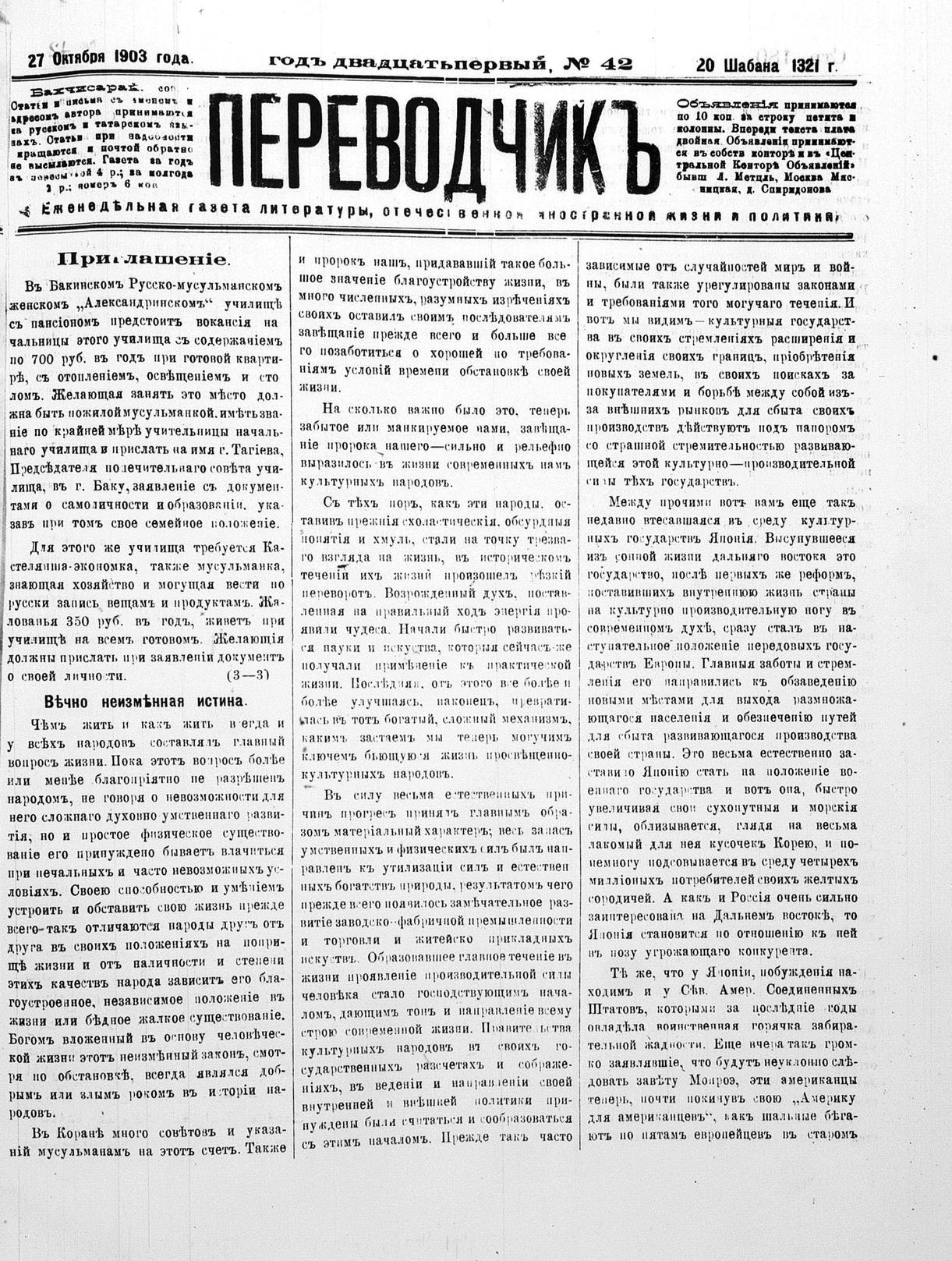 Turkish-Russian newspaper published in Crimea by İsmail Gaspıralı.