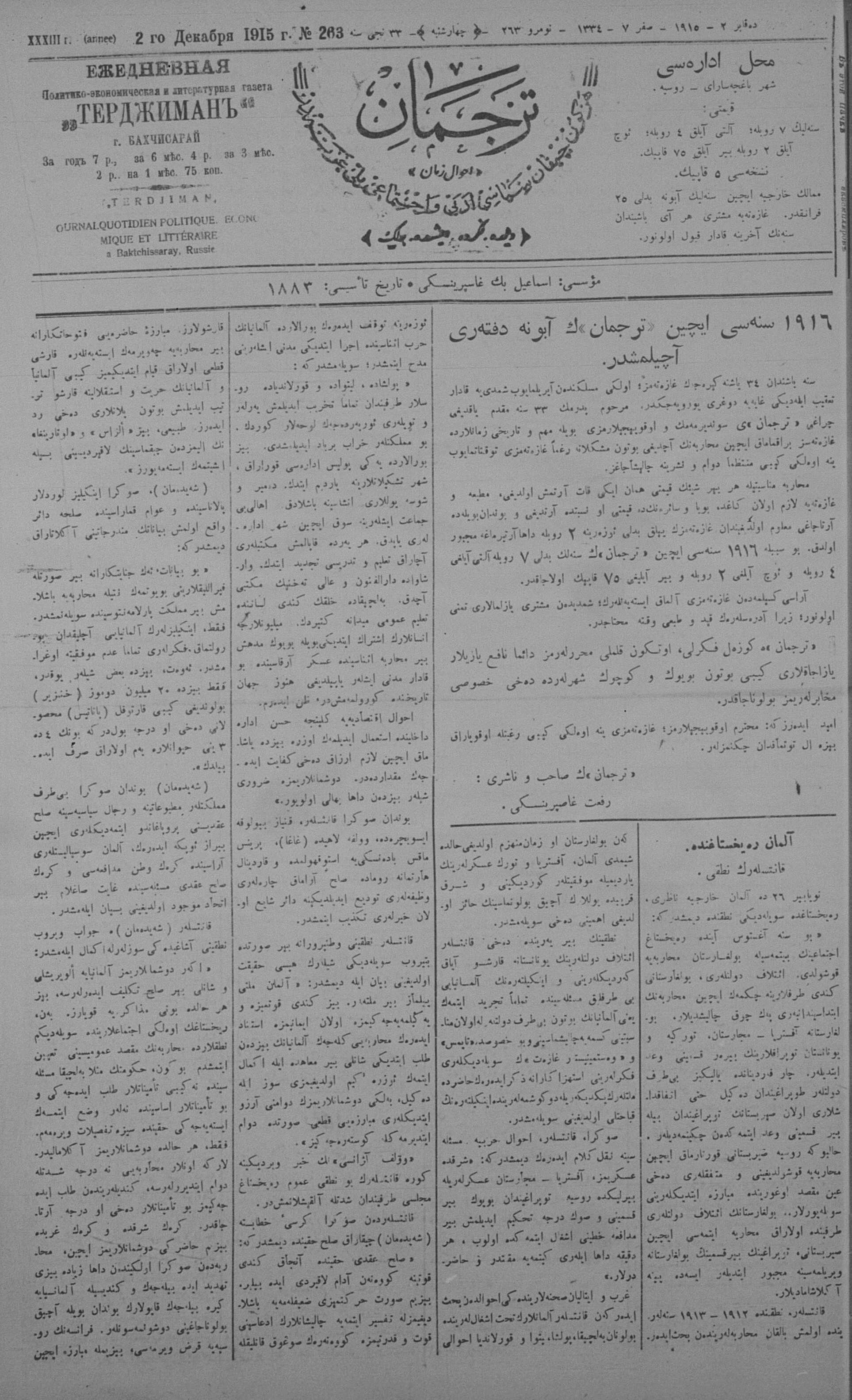 Turkish-Russian newspaper published in Crimea by İsmail Gaspıralı.