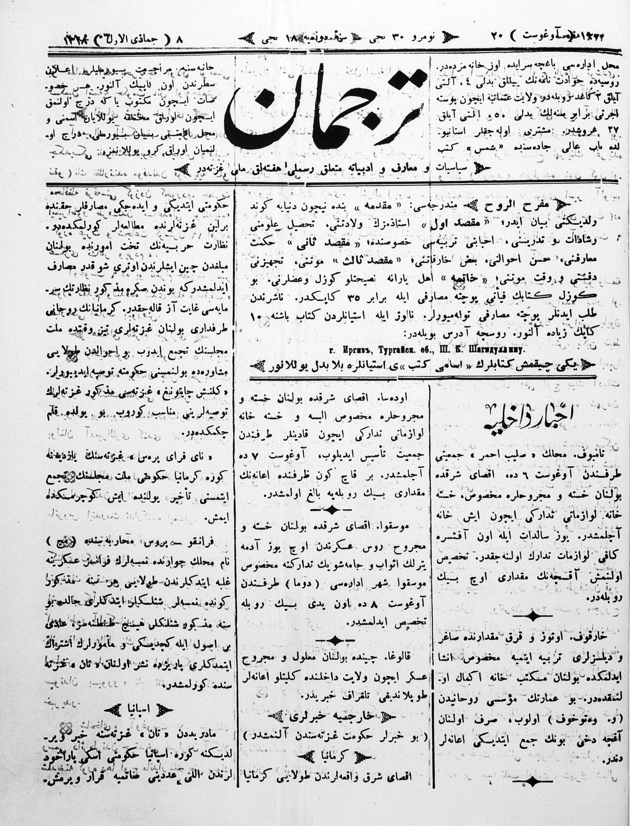 Tercüman, 20 August 1900 Year 18 No 30