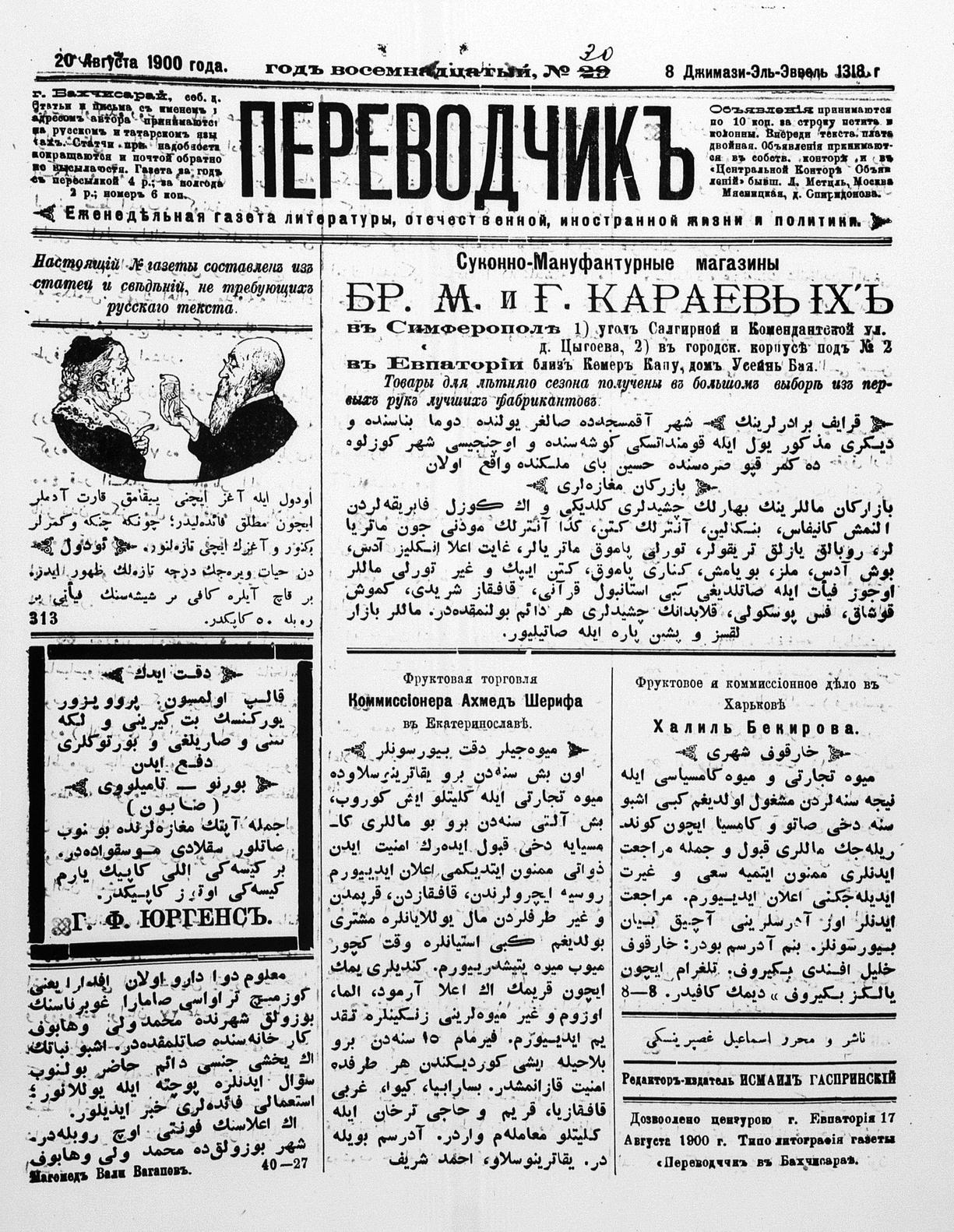 Turkish-Russian newspaper published in Crimea by İsmail Gaspıralı.