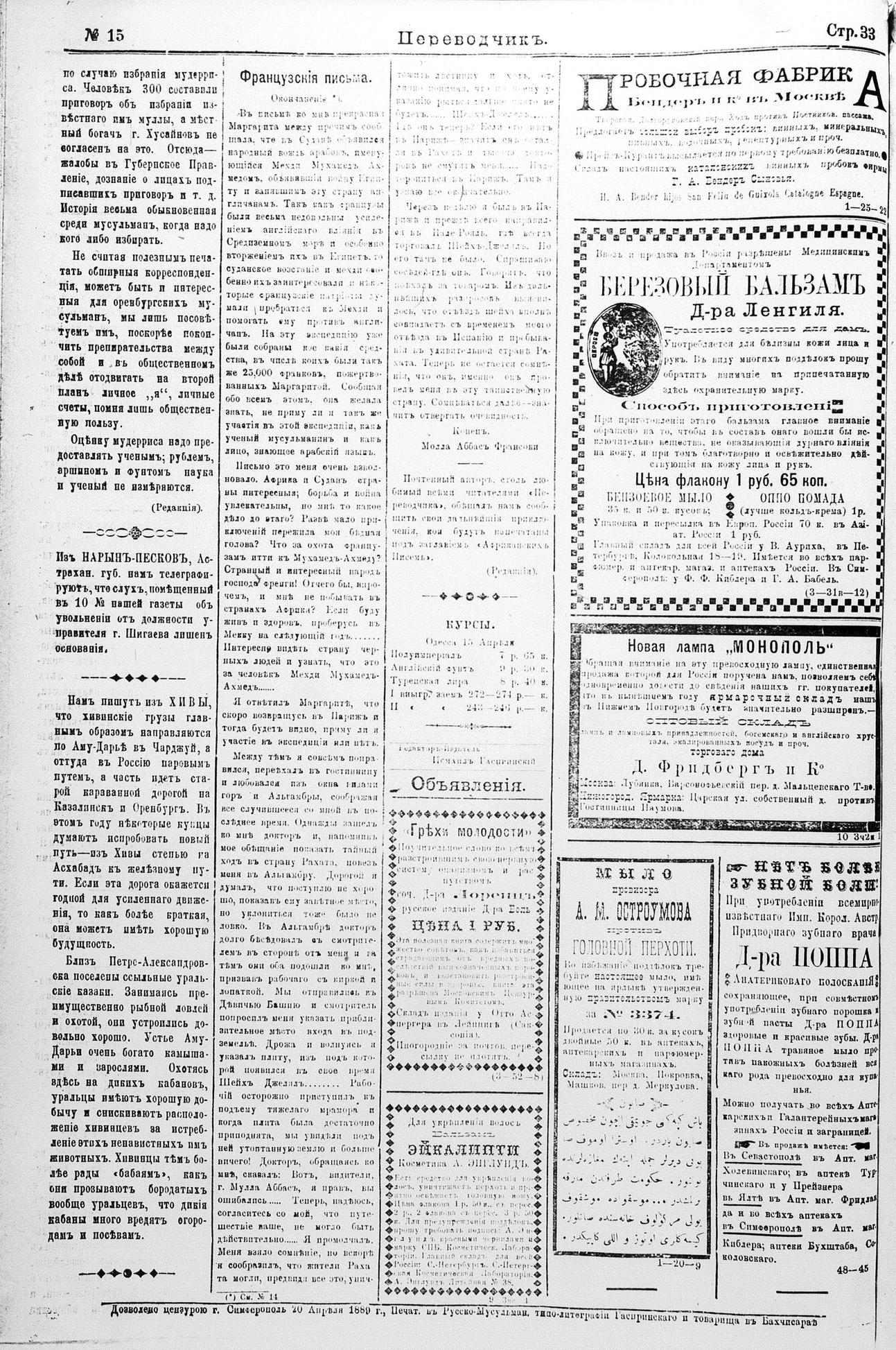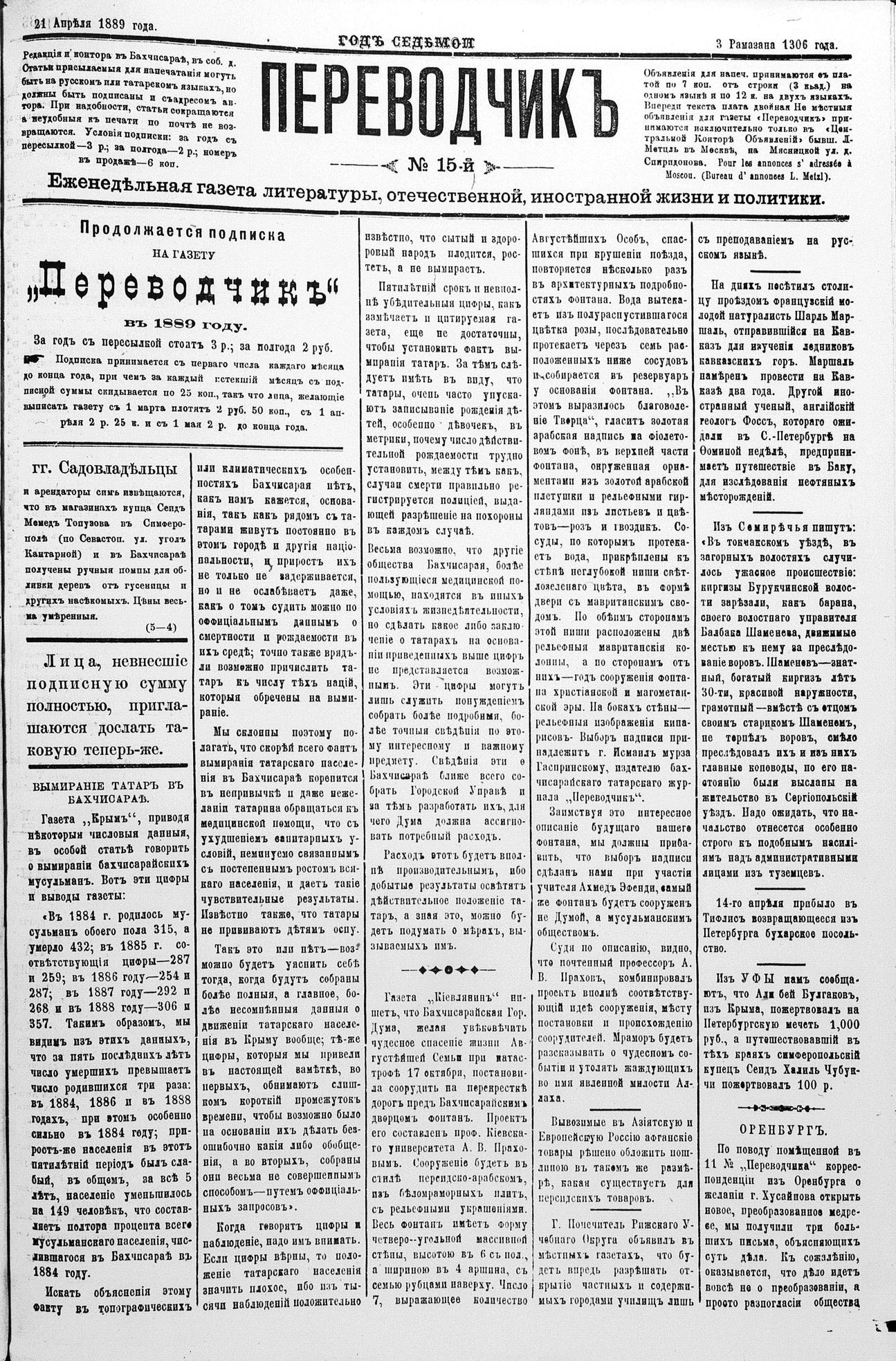 Tercüman, 21 April 1889 Year 7 No 15