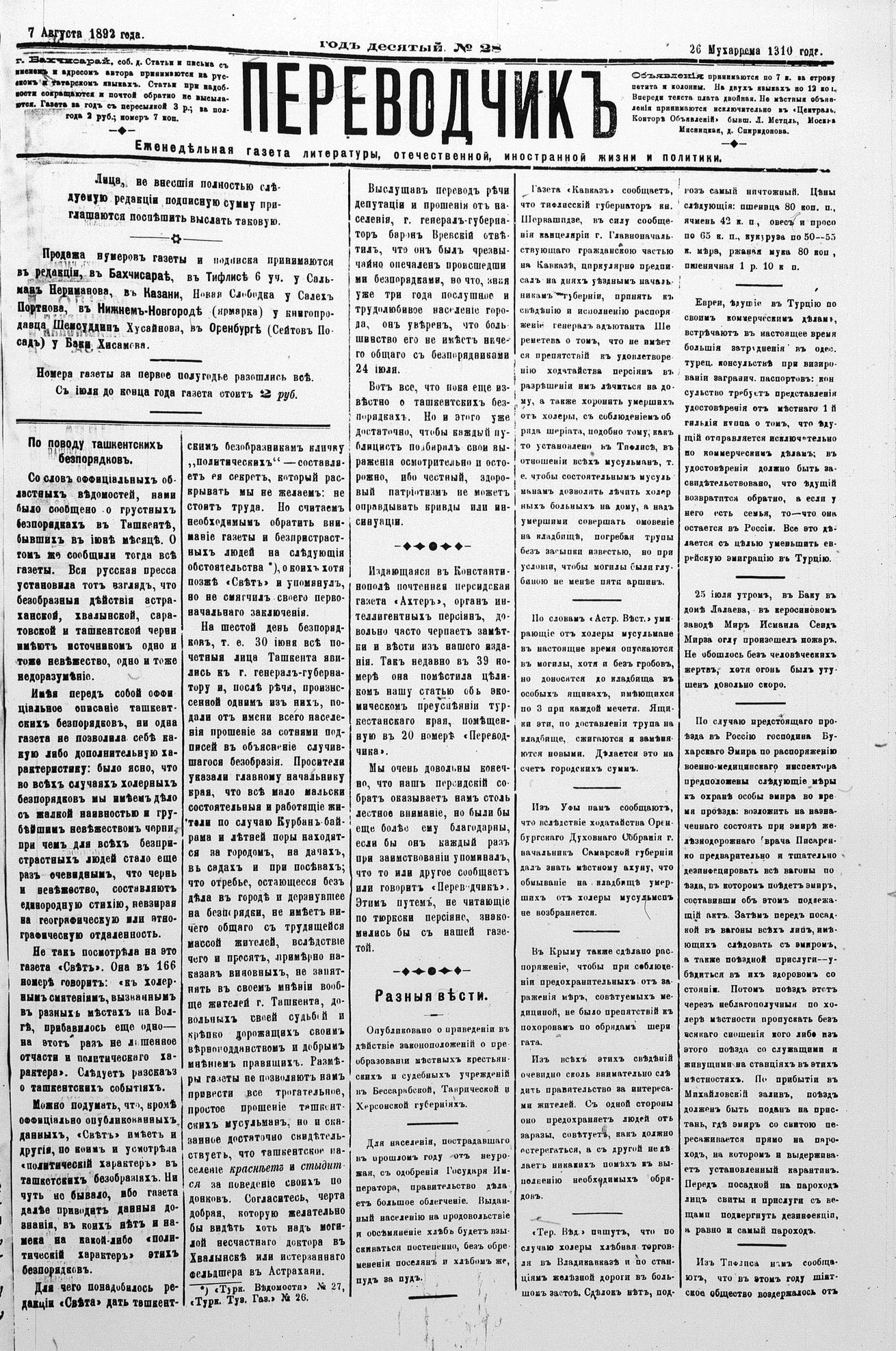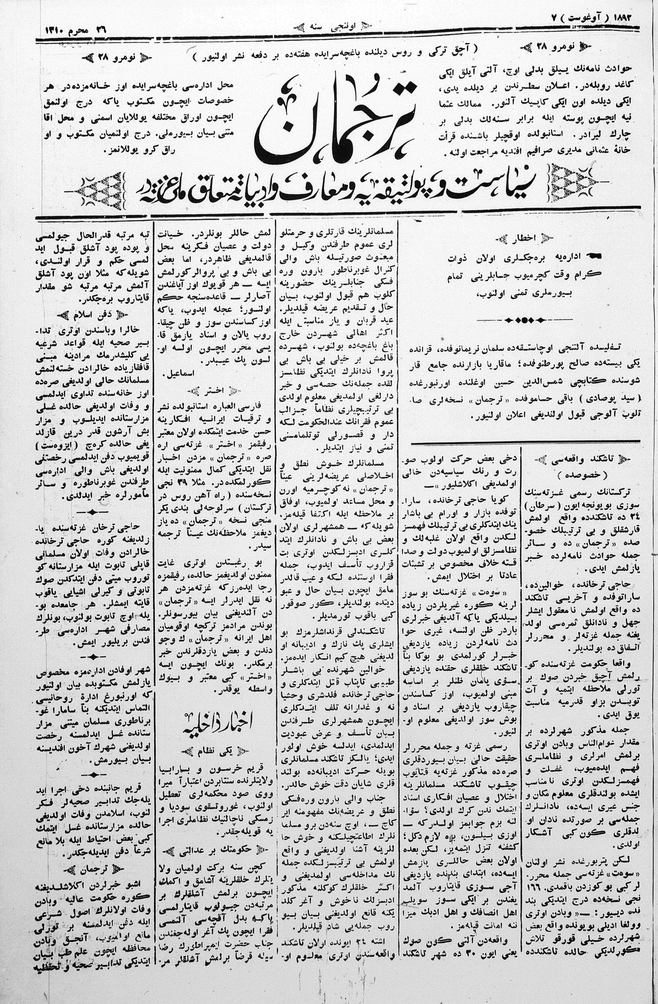 Tercüman, 07 August 1892 Year 10 No 28