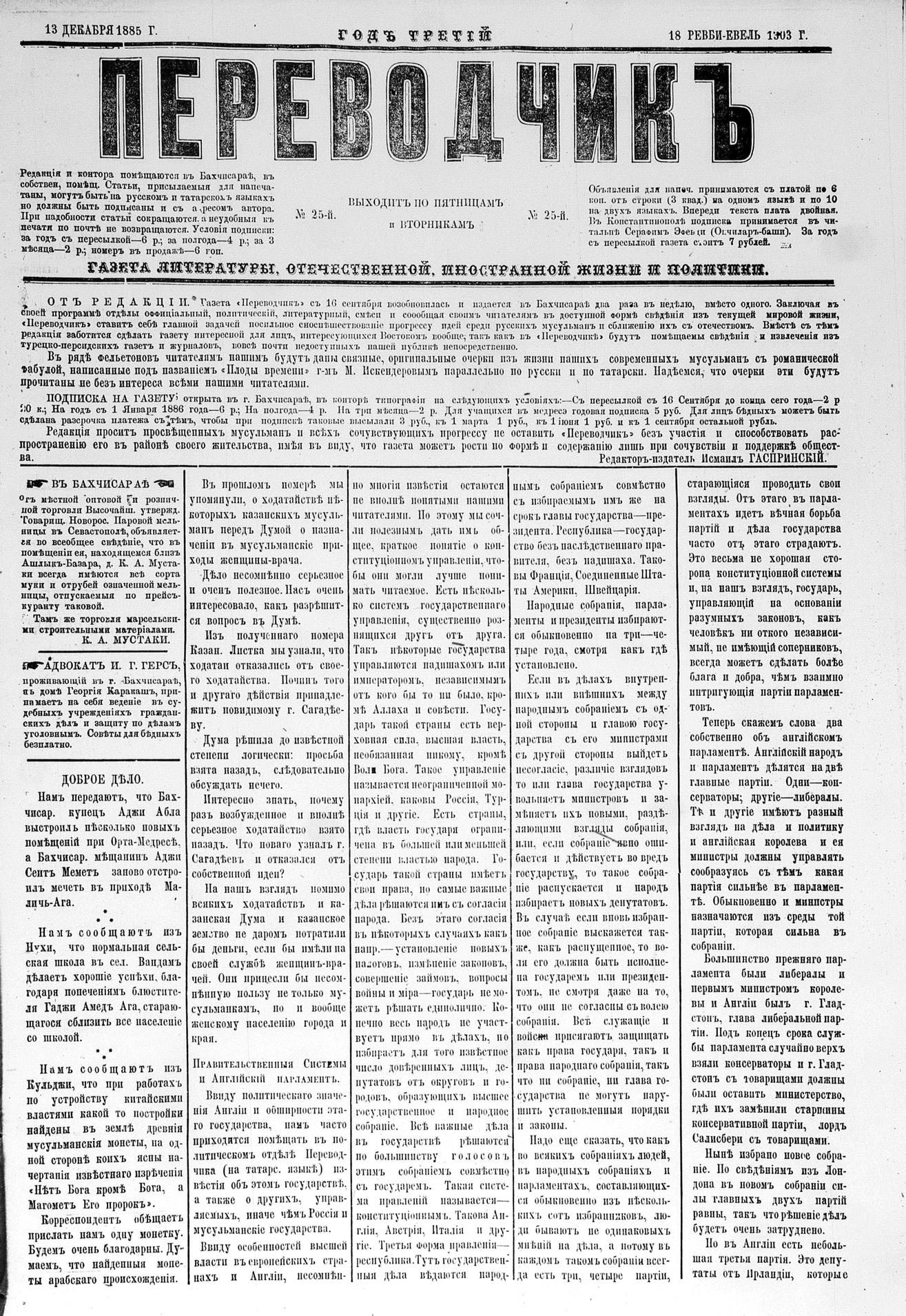 Turkish-Russian newspaper published in Crimea by Gaspirali Ismail Bey.