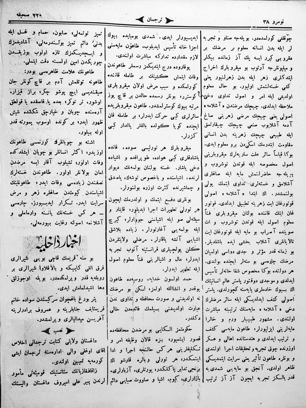 The name of the newspaper changed to Tercüman-ı Ahval-i Zaman in 1905. In 1909, it started to be published under its first name, Tercüman.