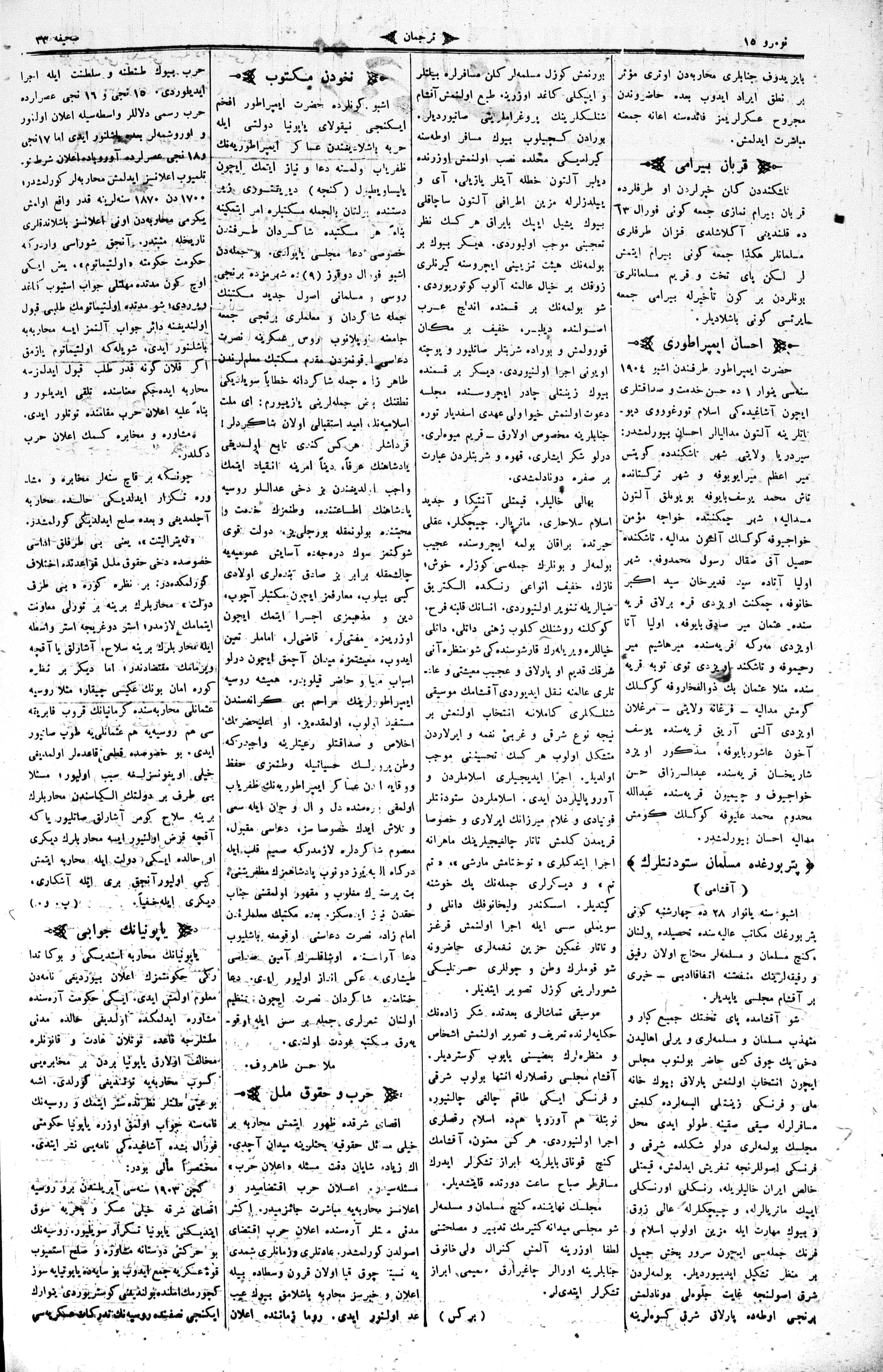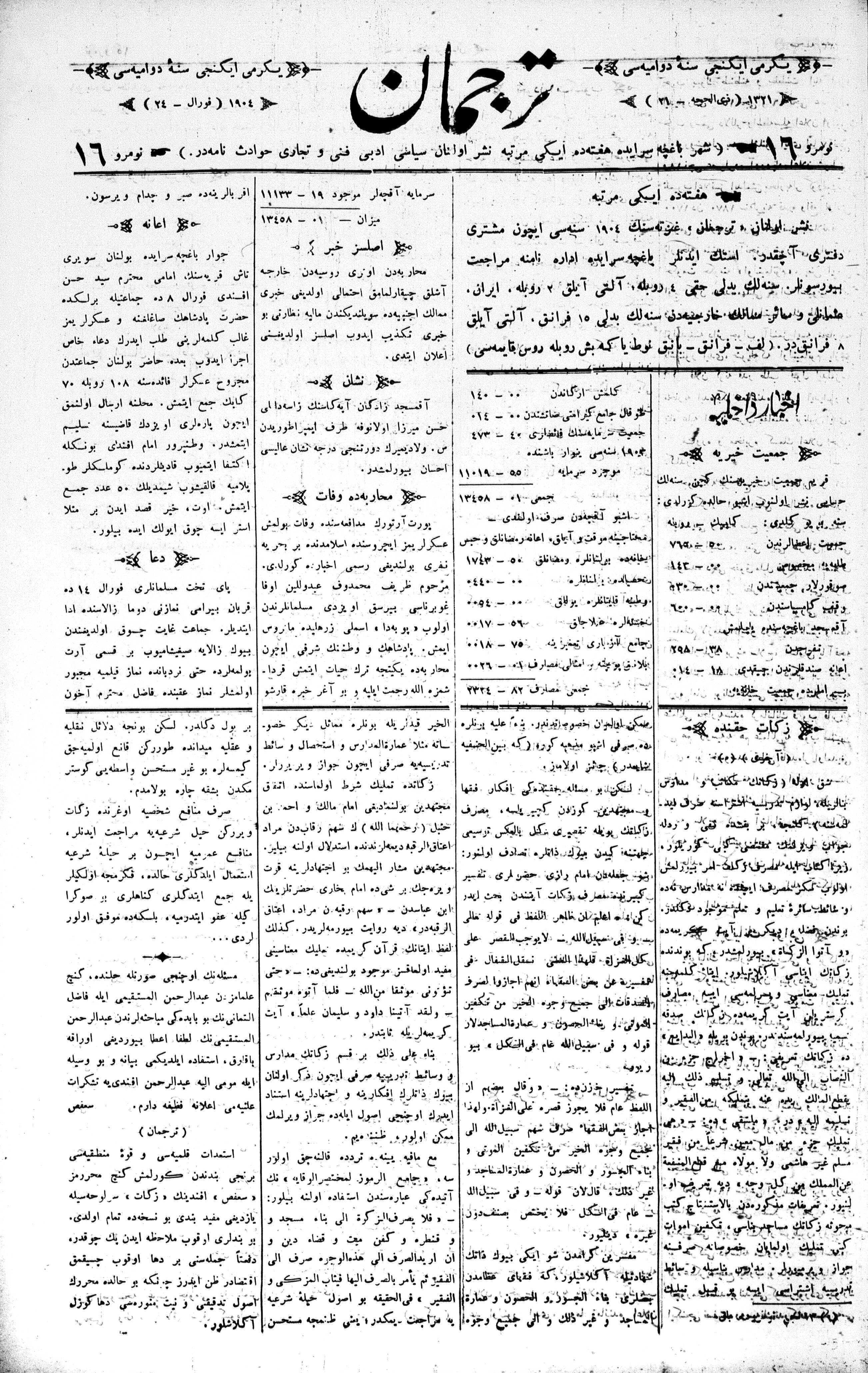 The name of the newspaper changed to Tercüman-ı Ahval-i Zaman in 1905. In 1909, it started to be published under its first name, Tercüman.