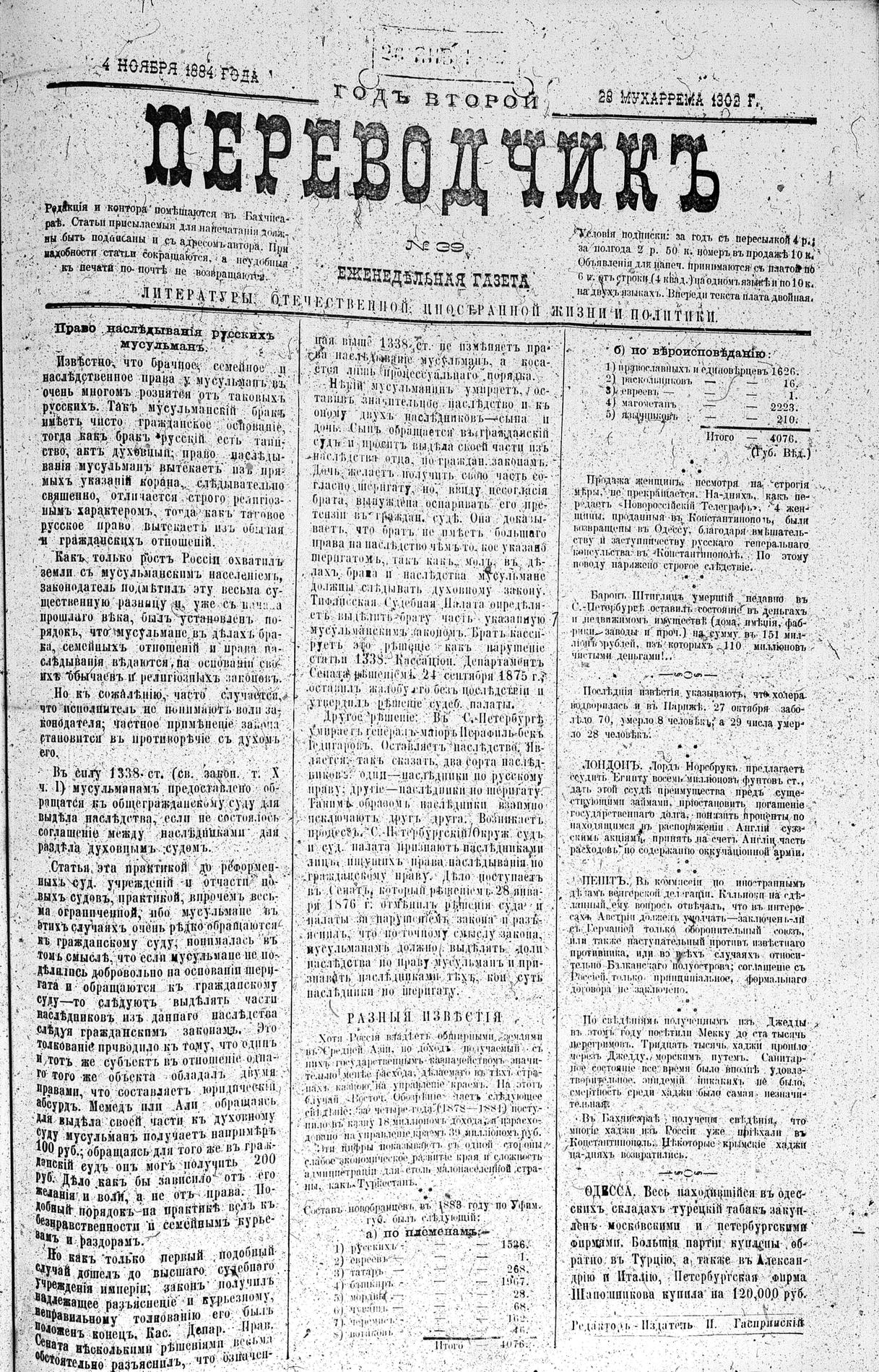 Turkish-Russian newspaper published in Crimea by İsmail Gaspıralı.