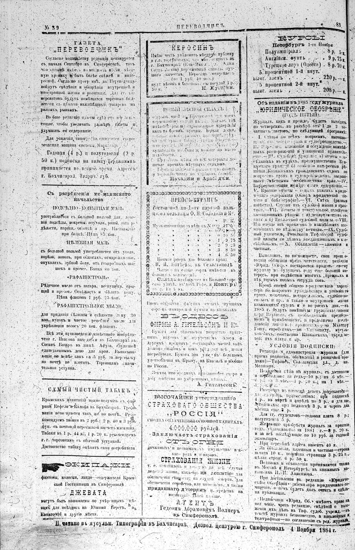 Tercüman, 04 November 1884 Year 2 No 39