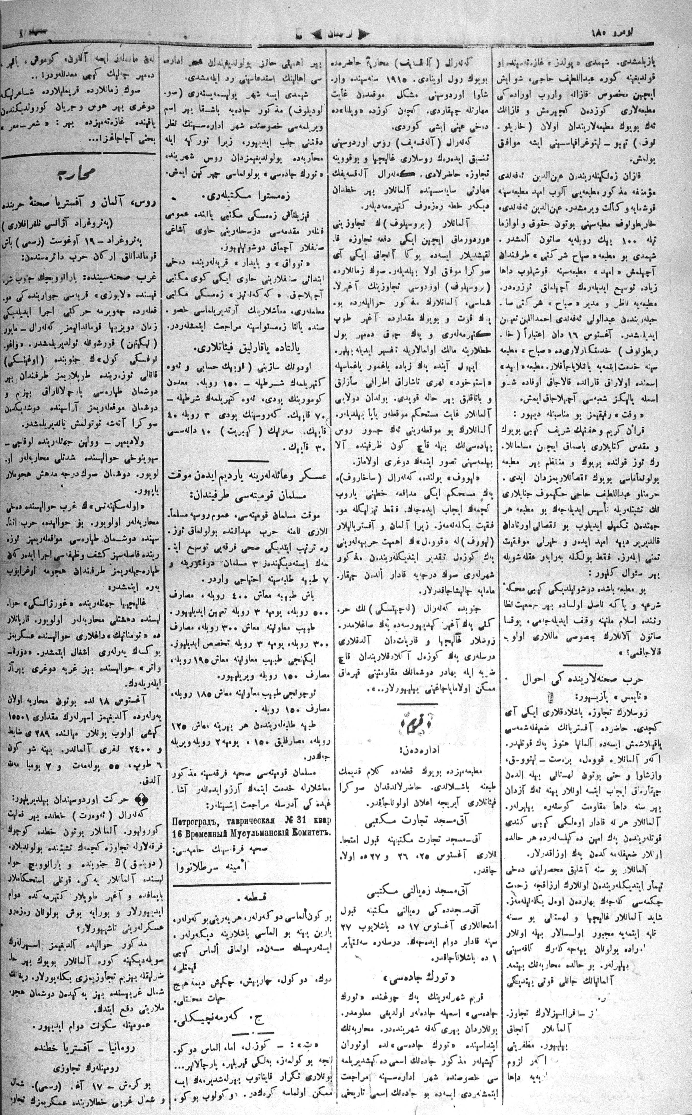 Tercüman, 21 August 1916 Year 34 No 180