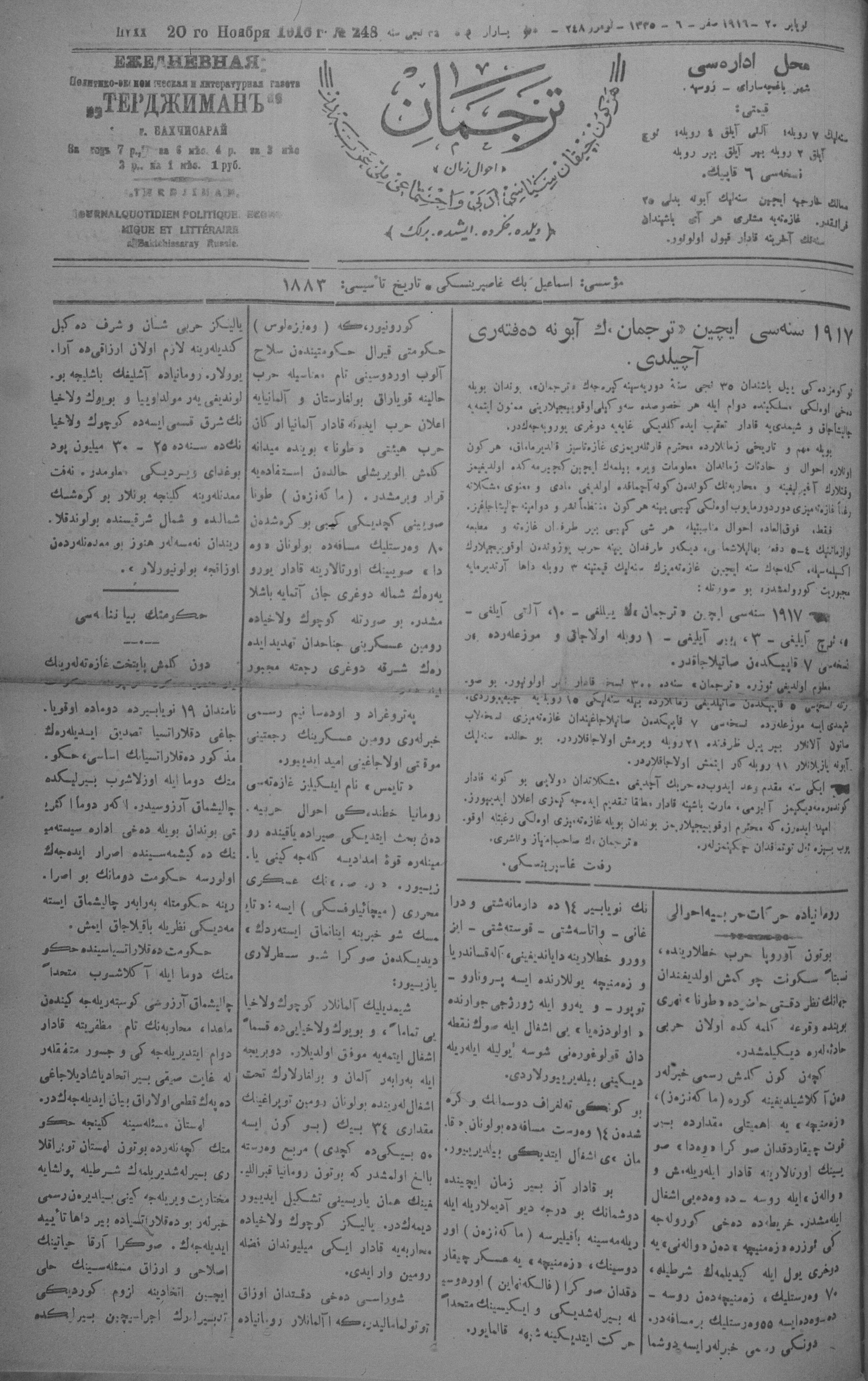 Tercüman, 20 November 1916 Year 34 No 248