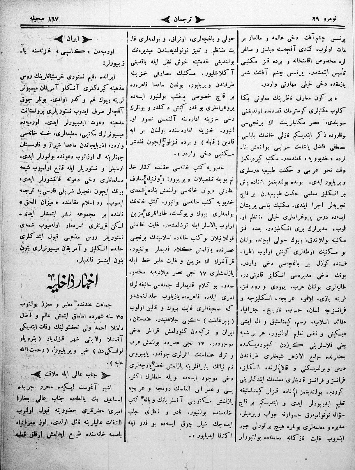The name of the newspaper changed to Tercüman-ı Ahval-i Zaman in 1905. In 1909, it started to be published under its first name, Tercüman.