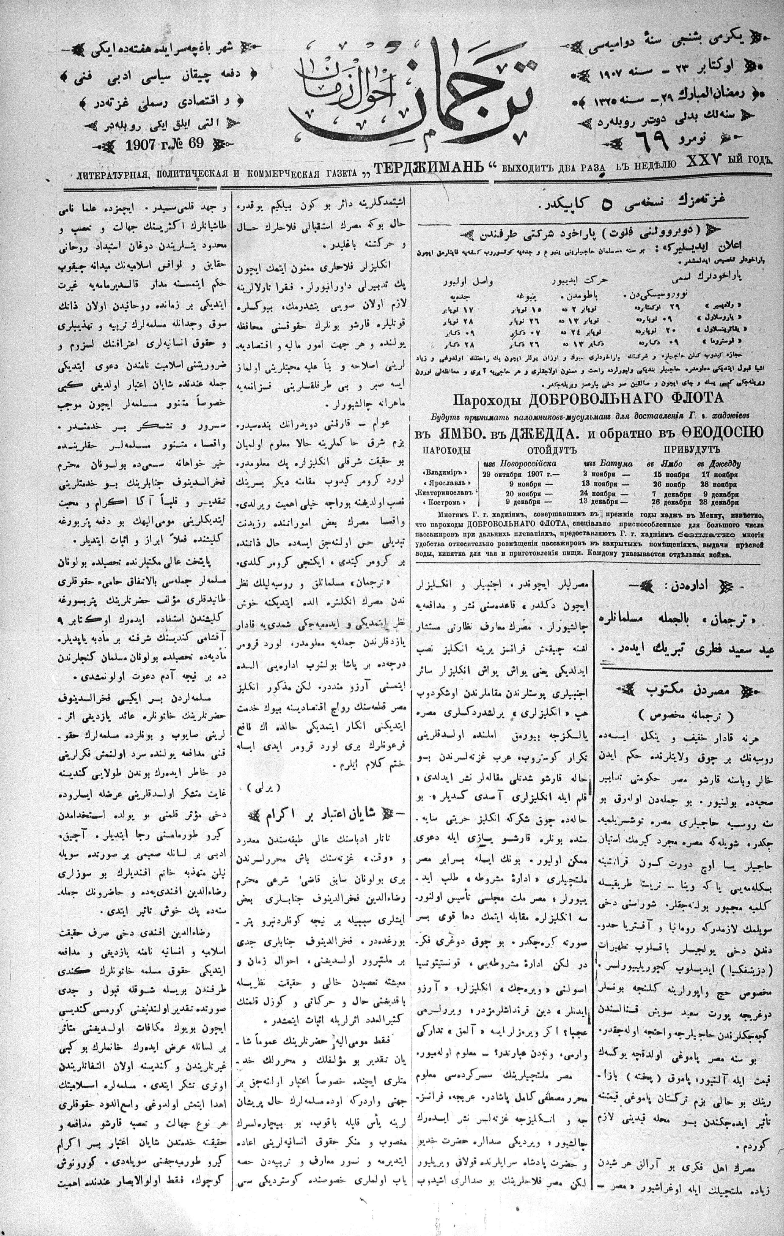 Tercüman, 23 October 1907 Year 25 No 69
