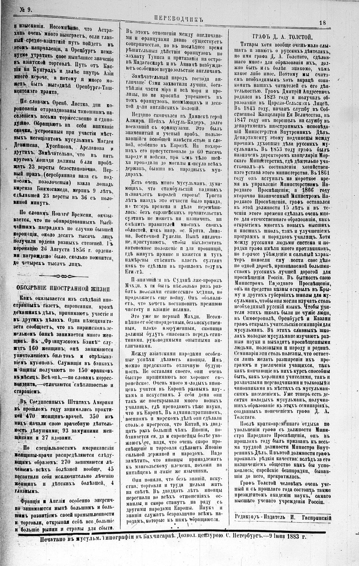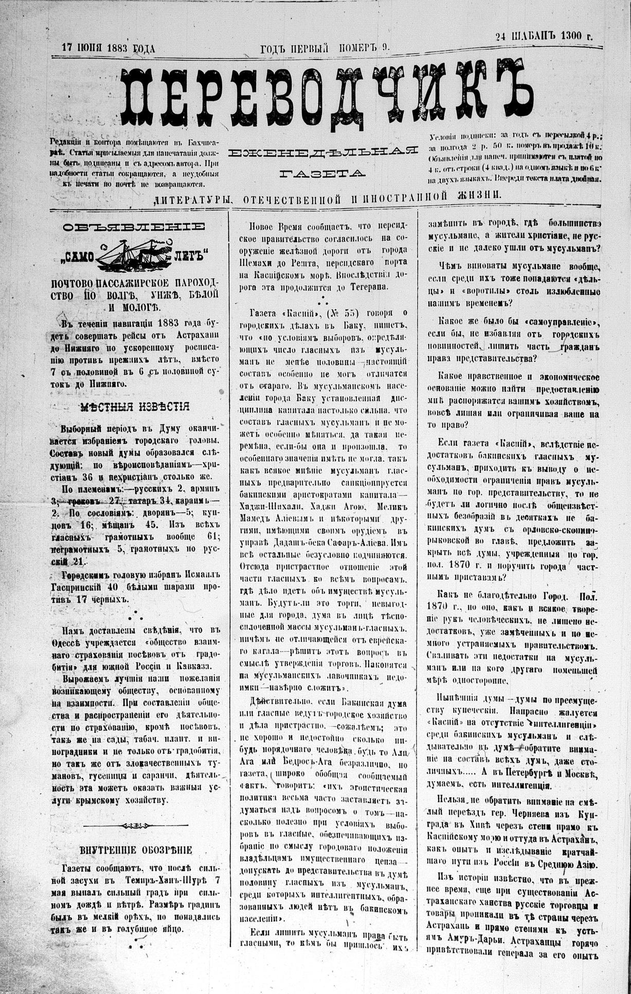 Tercüman, 17 June 1883 Year 1 No 9