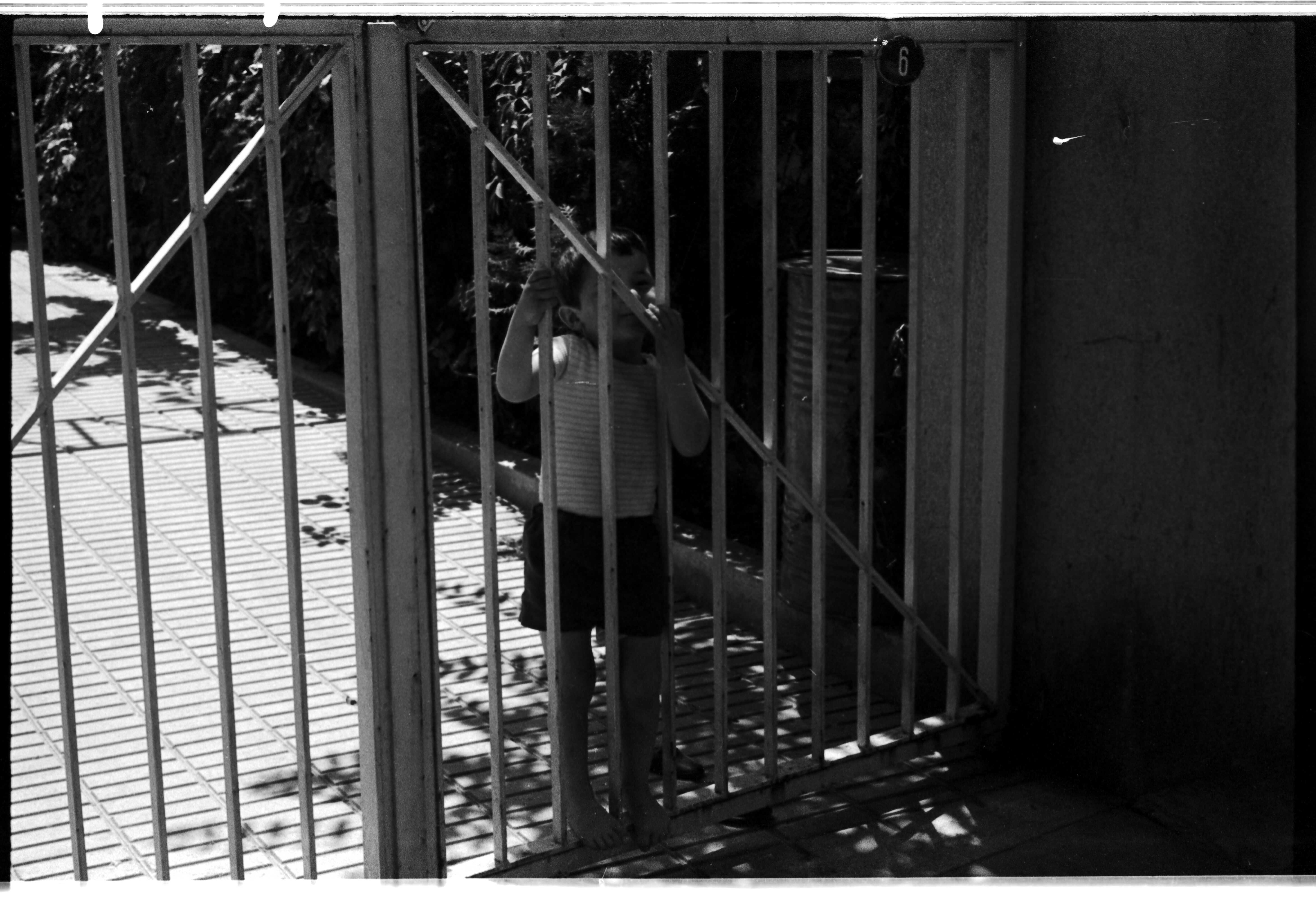 Kadıköy'de demir bir kapı ve çocuk