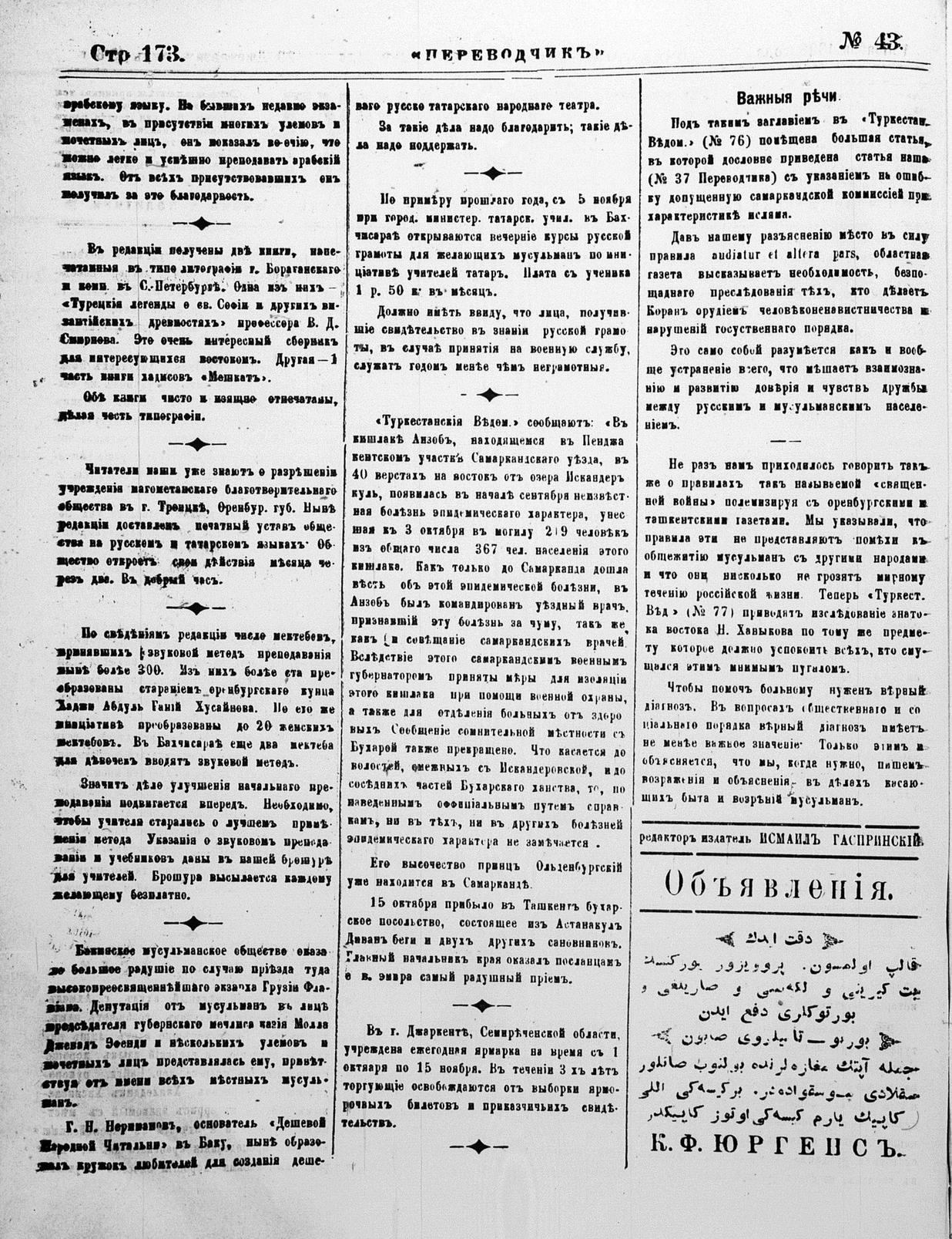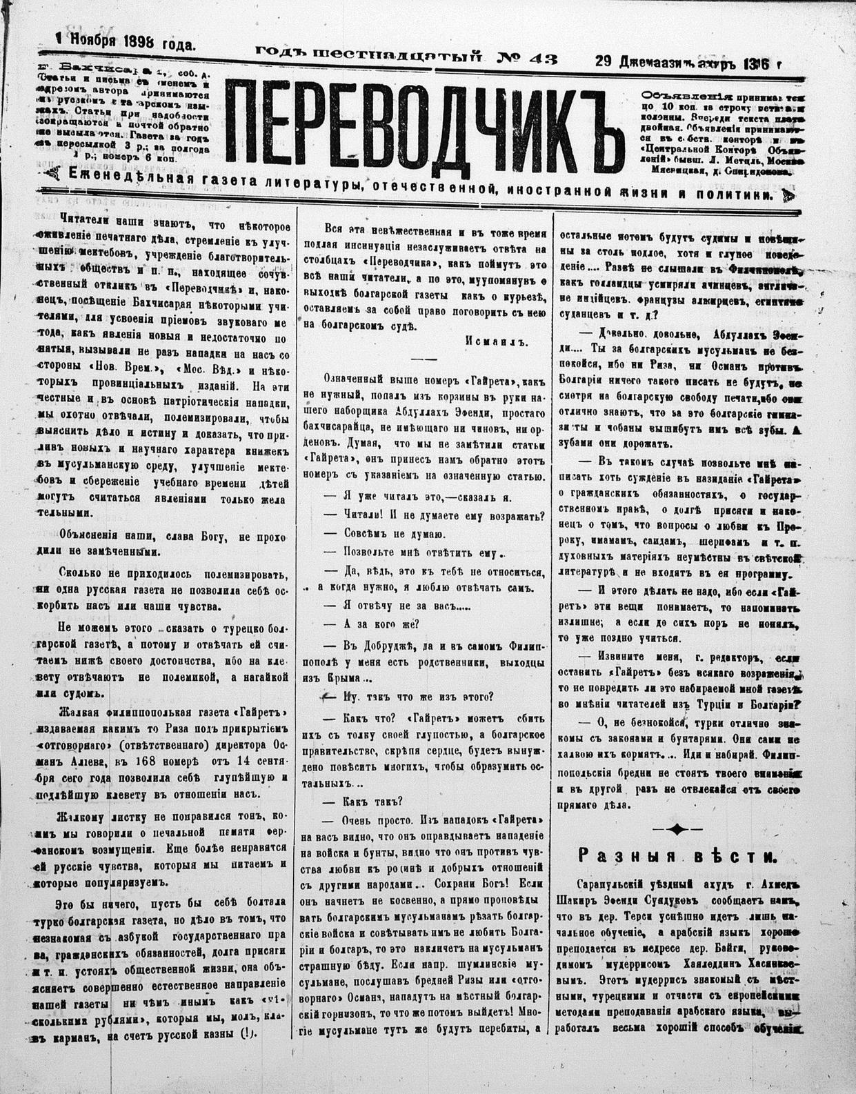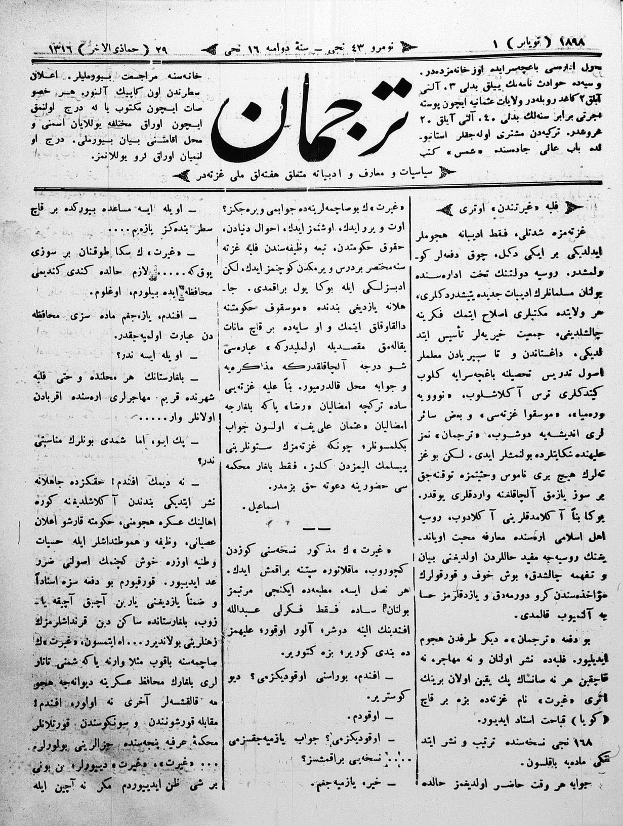 Tercüman, 01 November 1898 Year 16 No 43
